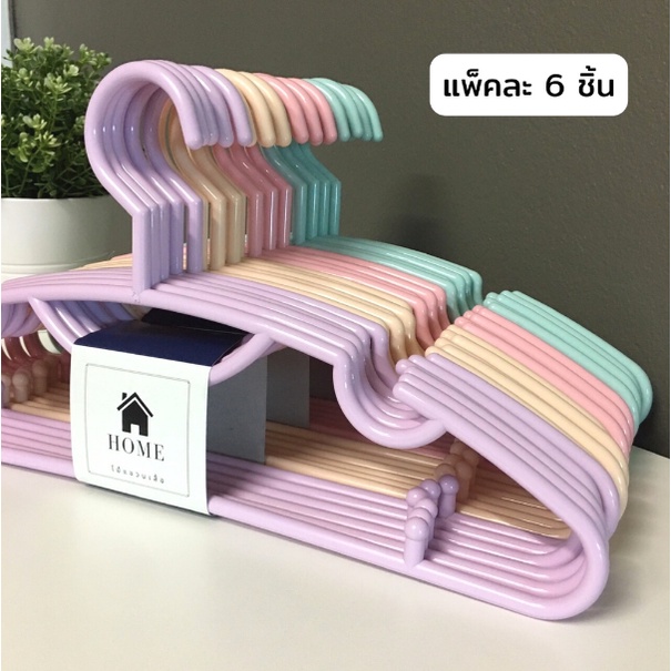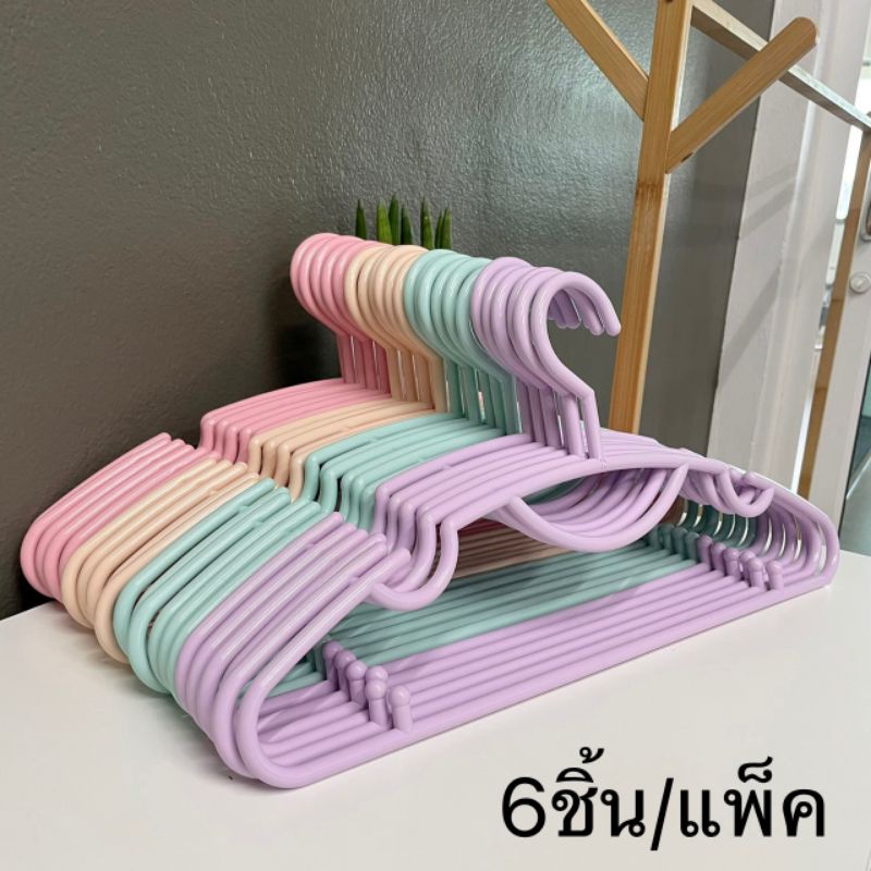 ไม้แขวนเสื้อ สีพาสเทล น่ารัก ไม้แขวนพลาสติก แพ็ค 6 ชิ้น #No.88