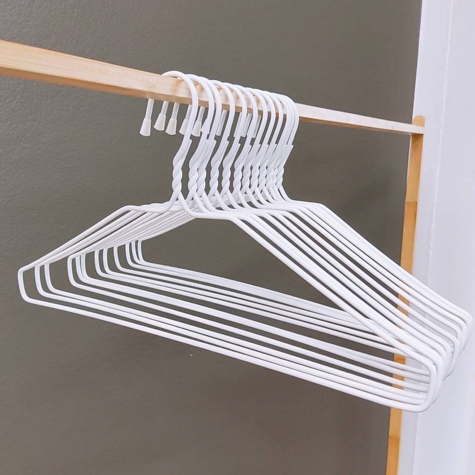 ไม้แขวนเสื้อ สีขาว มินิมอล ไม้แขวนผ้า ลวดหุ้มพลาสติกอย่างดี แพ็คละ 12 ชิ้น #นกน้อยสีขาว