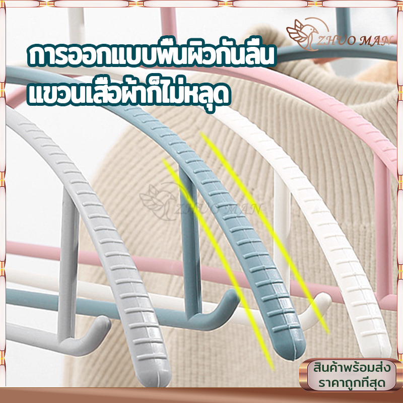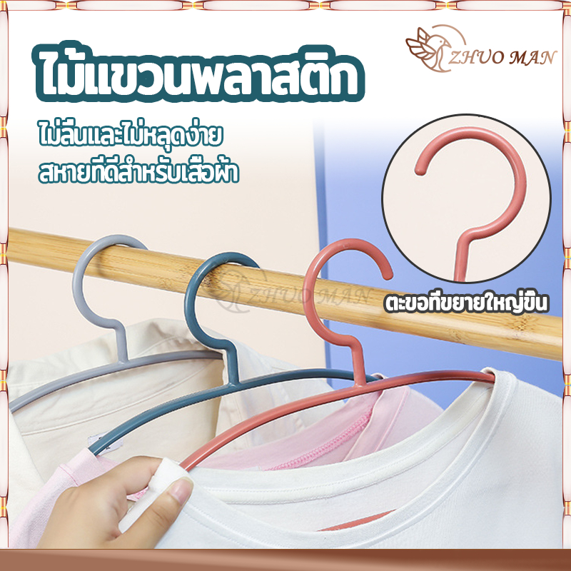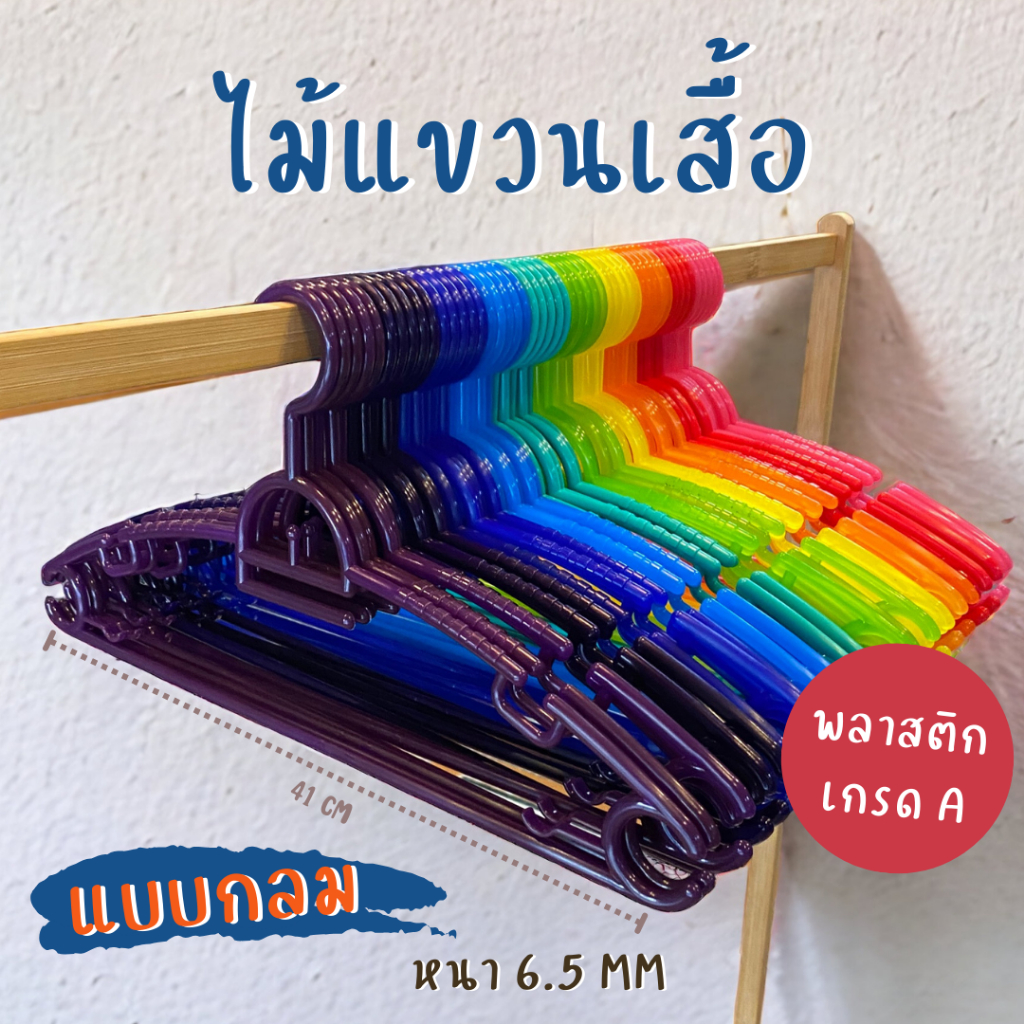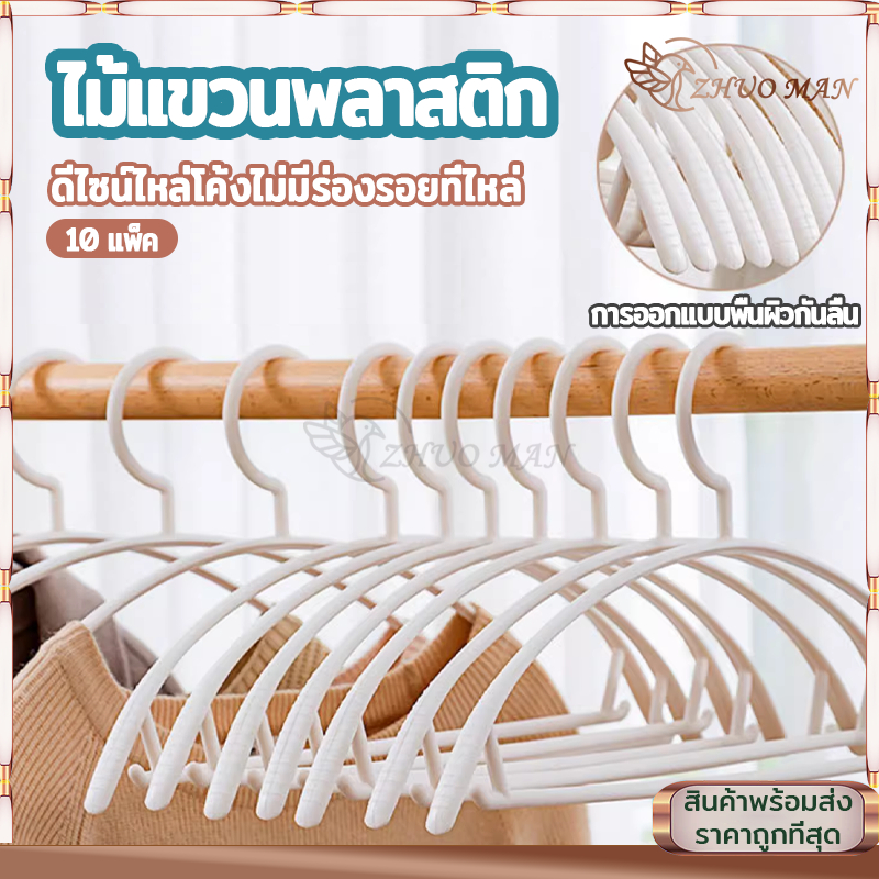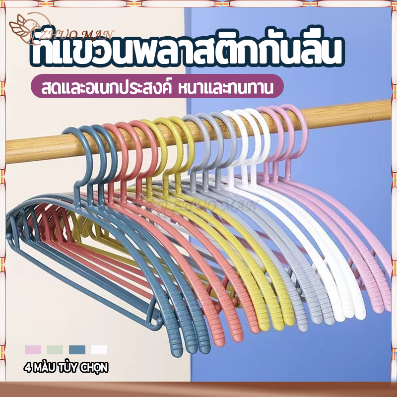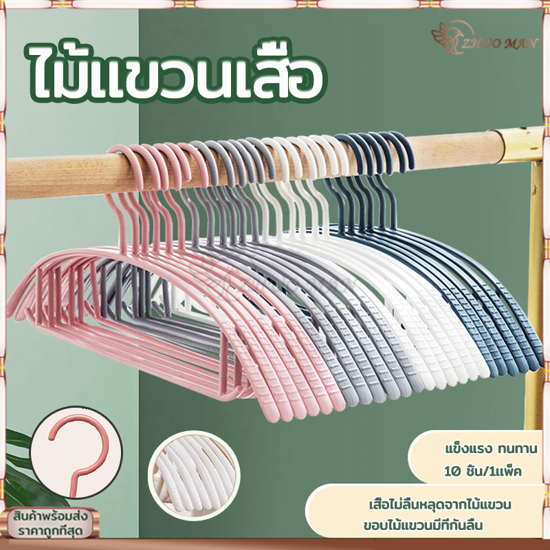 ไม้แขวนเสื้อ ไม้แขวนผ้า (10ชิ้น) ไม้แขวนเสื้อพลาสติก/ไม้แขวน รับน้ำหนักได้ดี แข็งแรง ทนทาน ไม่ลื่น 4สี
