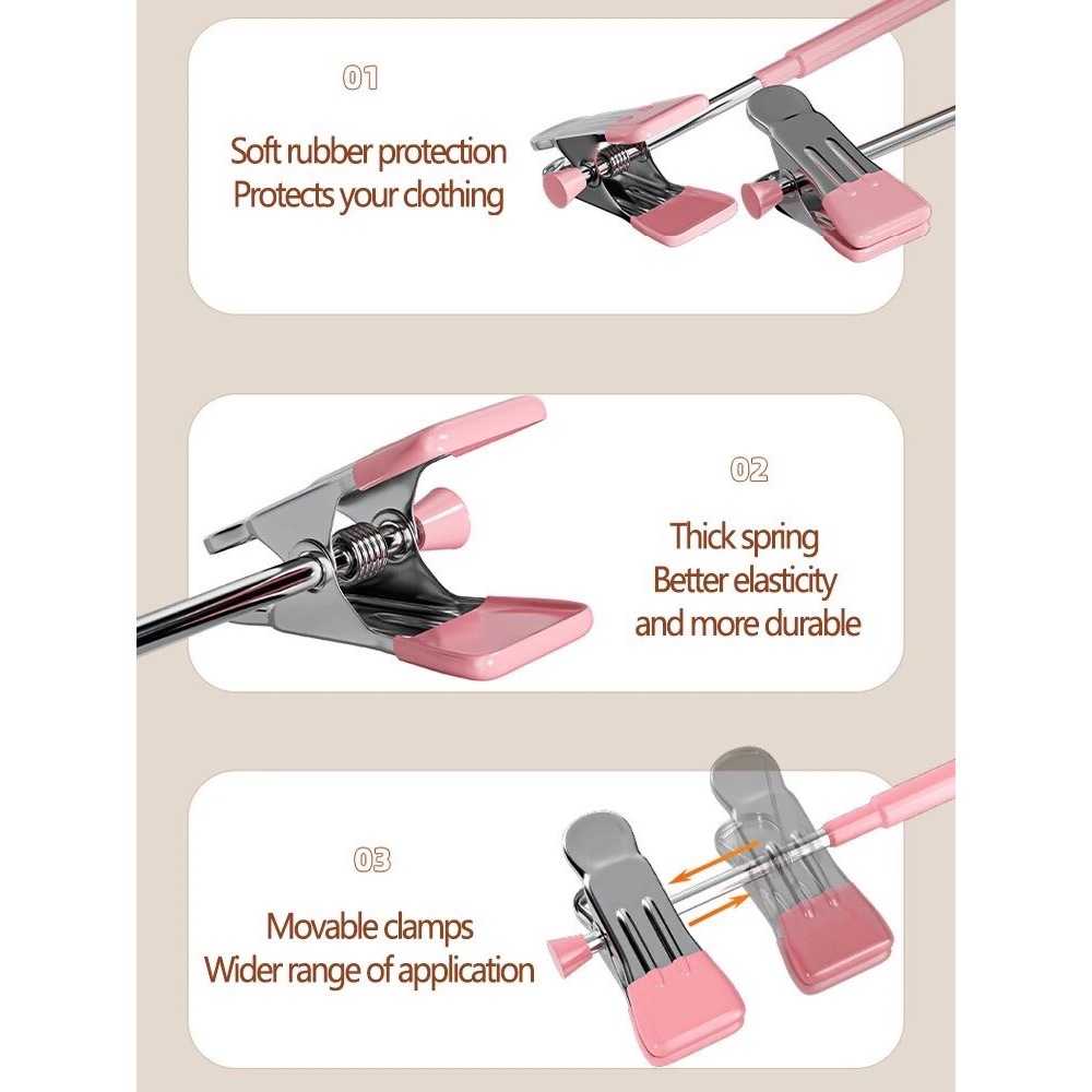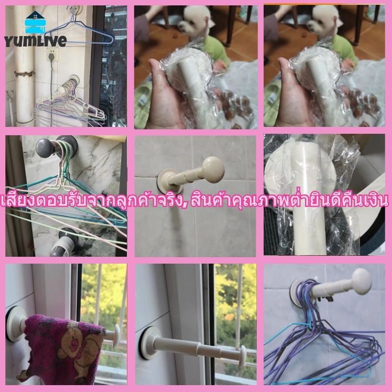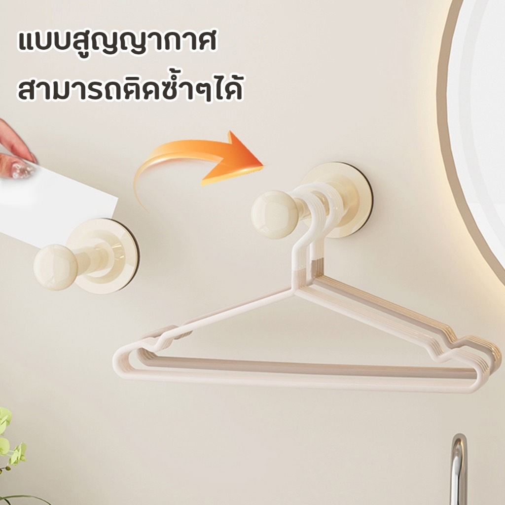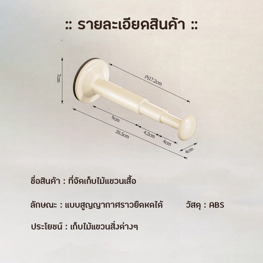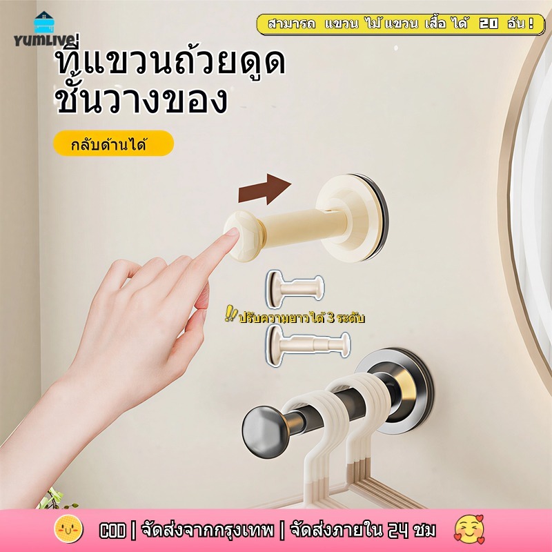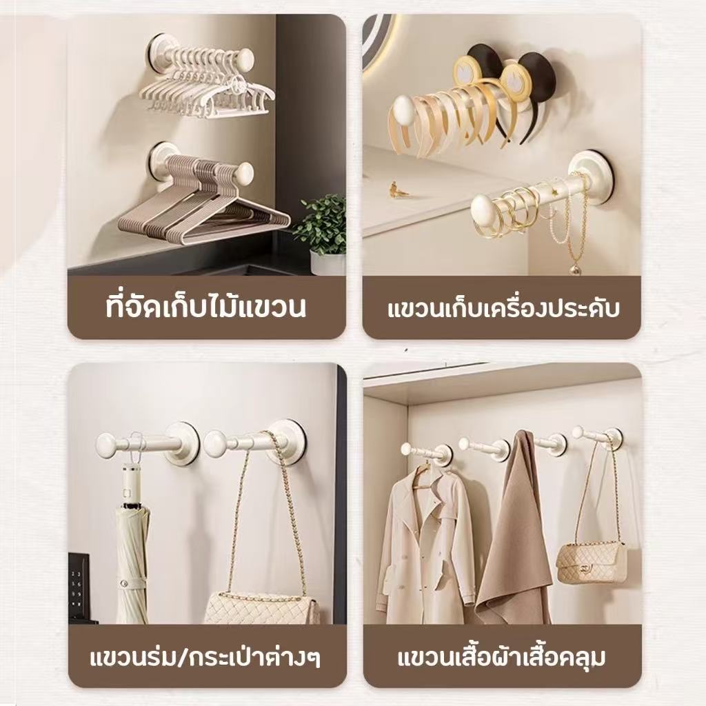 ไม้แขวนเสื้อแบบยืดหดได้ ถ้วยดูดสุญญากาศ สามารถติดตั้งซ้ำได้โดยไม่ต้องเจาะรูบนผนัง ช่วยจัดระเบียบไม้แขวนเสื้อ