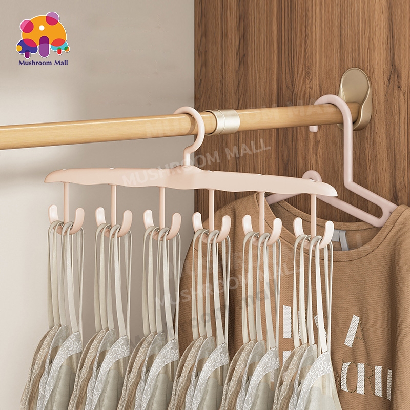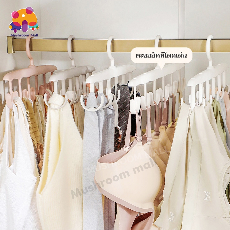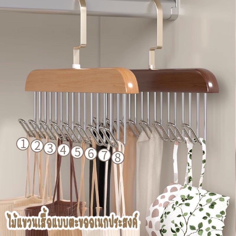ไม้แขวนเสื้อใน ตะขอไม้แขวนผ้าพันคอ เข็มขัด 8 ตะขอ กันลื่น ประหยัดพื้นที่ ตู้เสื้อผ้า ที่เก็บเสื้อผ้า 27.5*18cm