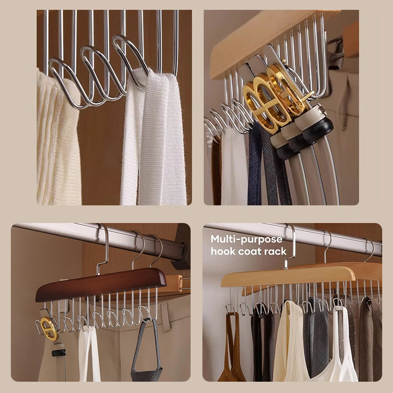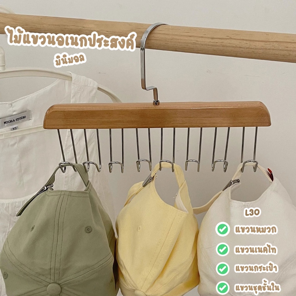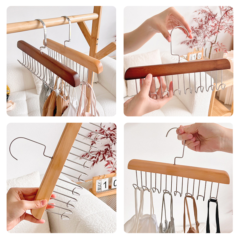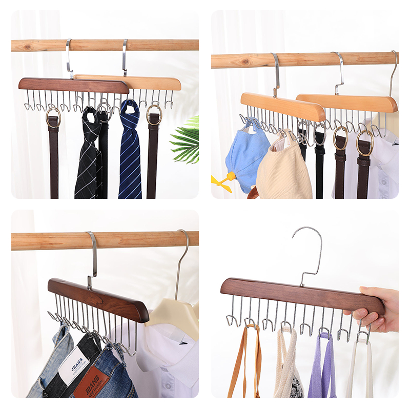 ไม้แขวนเสื้อใน 12 ตะขอ ไม้แขวนเสื้อ ช้สำหรับ เน็คไท ชุดชั้นใน ถุงน่อง ผ้าพันคอผ้าไหม ตะขอแขวนหมุนไม้360องศา