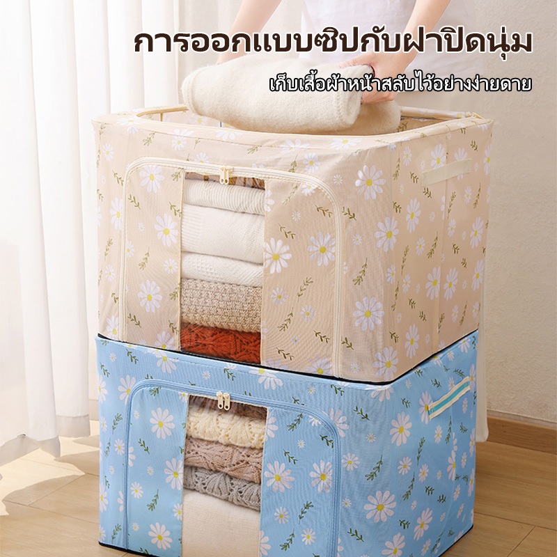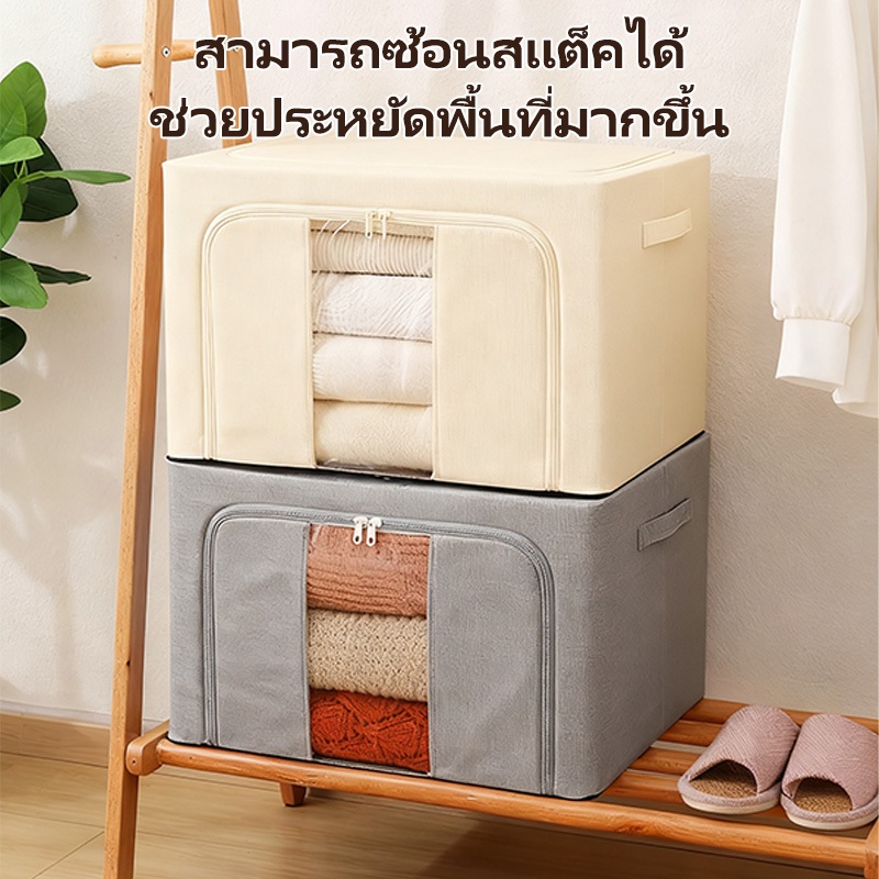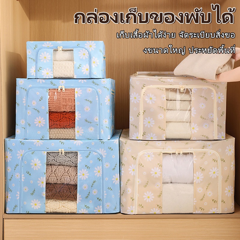?พร้อมส่ง? กล่องผ้า ใส่ของพับได้ อเนกประสงค์ เก็บกางเกง เก็บเสื้อผ้า มีโครงเหล็กด้านใน สินค้าในไทย