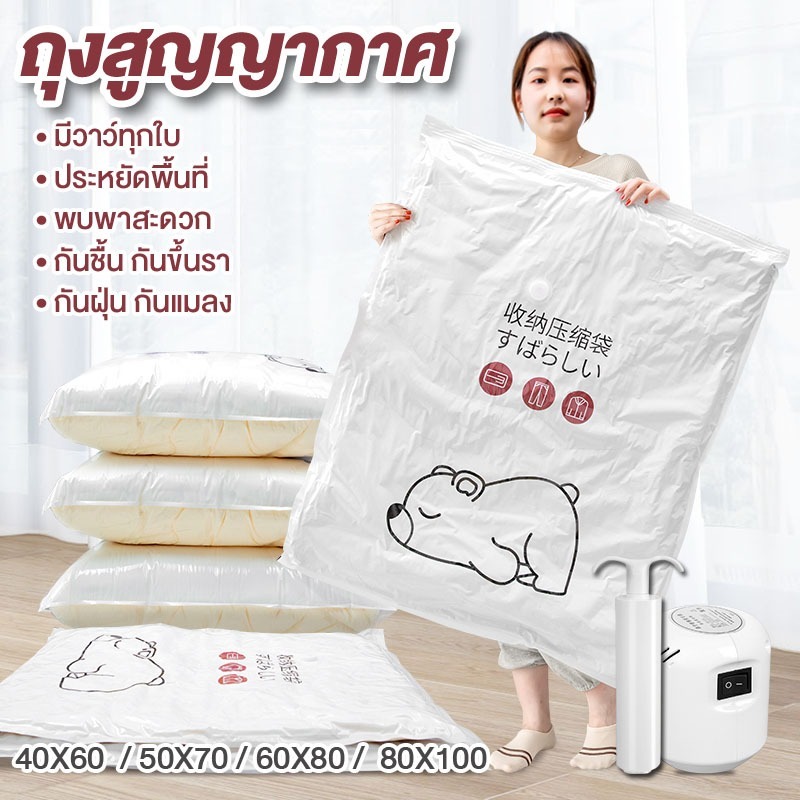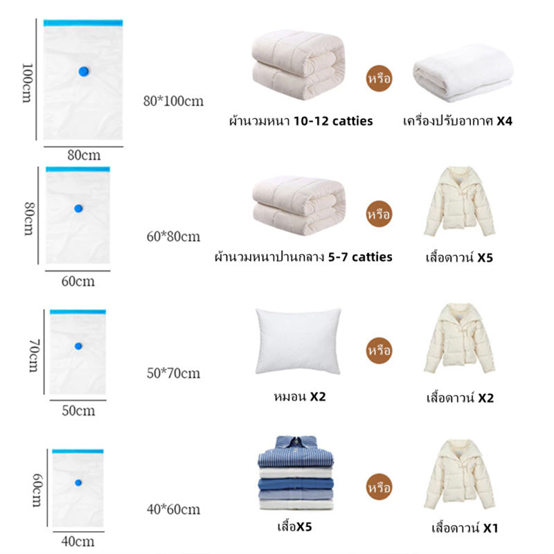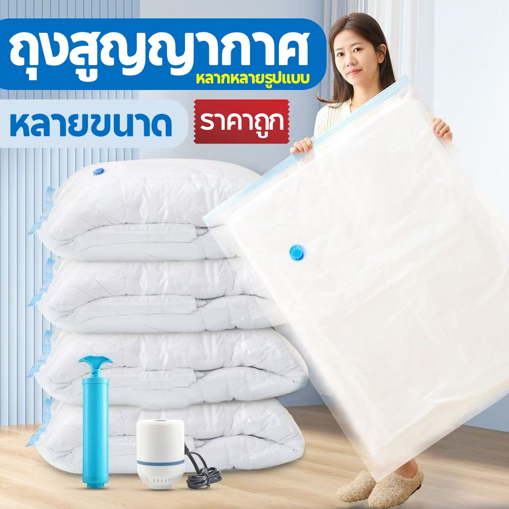 ?ถุงสูญญากาศสำหรับจัดเก็บเสื้อผ้าและผ้านวม ถุงหนาและทนทาน มีจุกวาล์วให้ทุกใบ ถุงจัดเก็บประหยัดพื้นที่ ✨