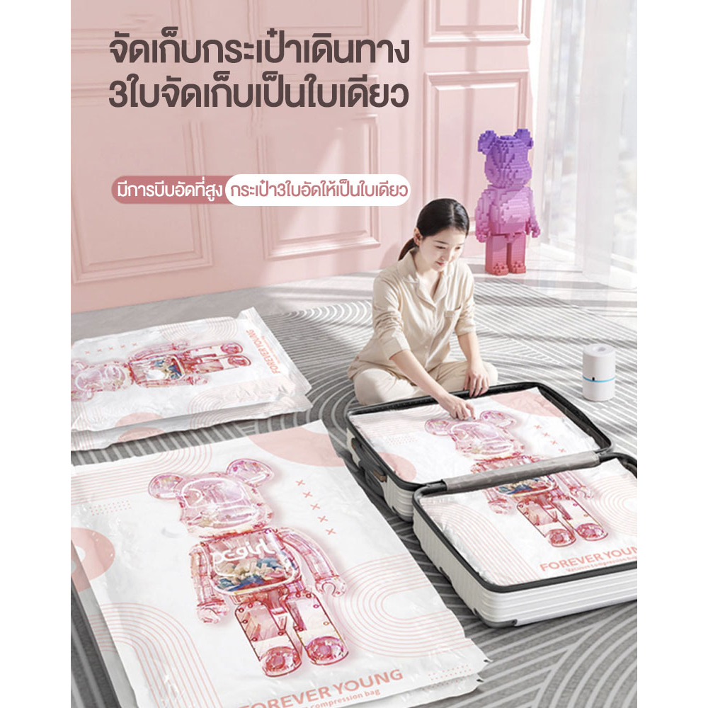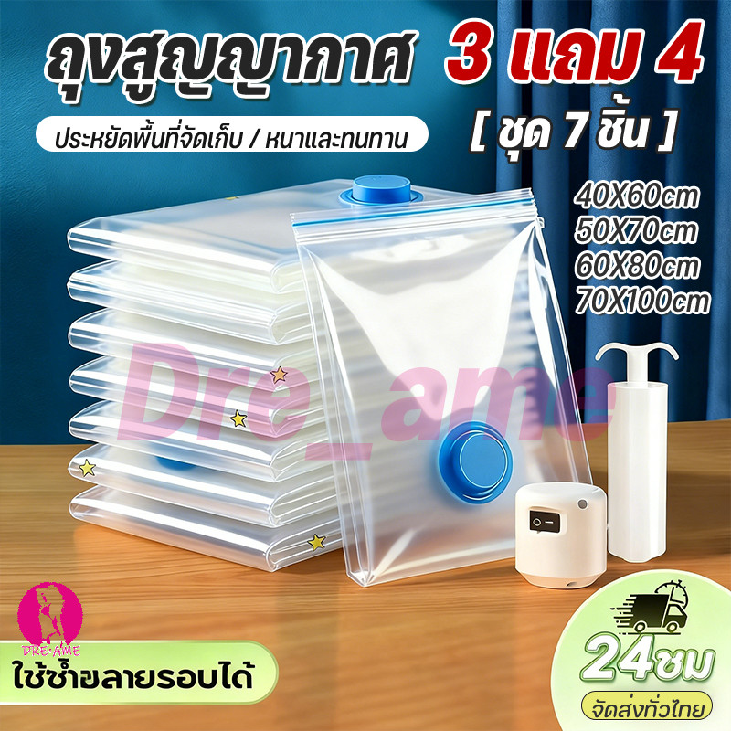 【 3 แถม 4】ถุงสูญญากาศ เก็บเสื้อผ้าผ้าห่มผ้านวมจัดเก็บของกระชับพื้นที่แพ็คของเดินทางถุงใส่เสื้อผ้าพกพา ราคาต่อชิ้น(แบบใส)