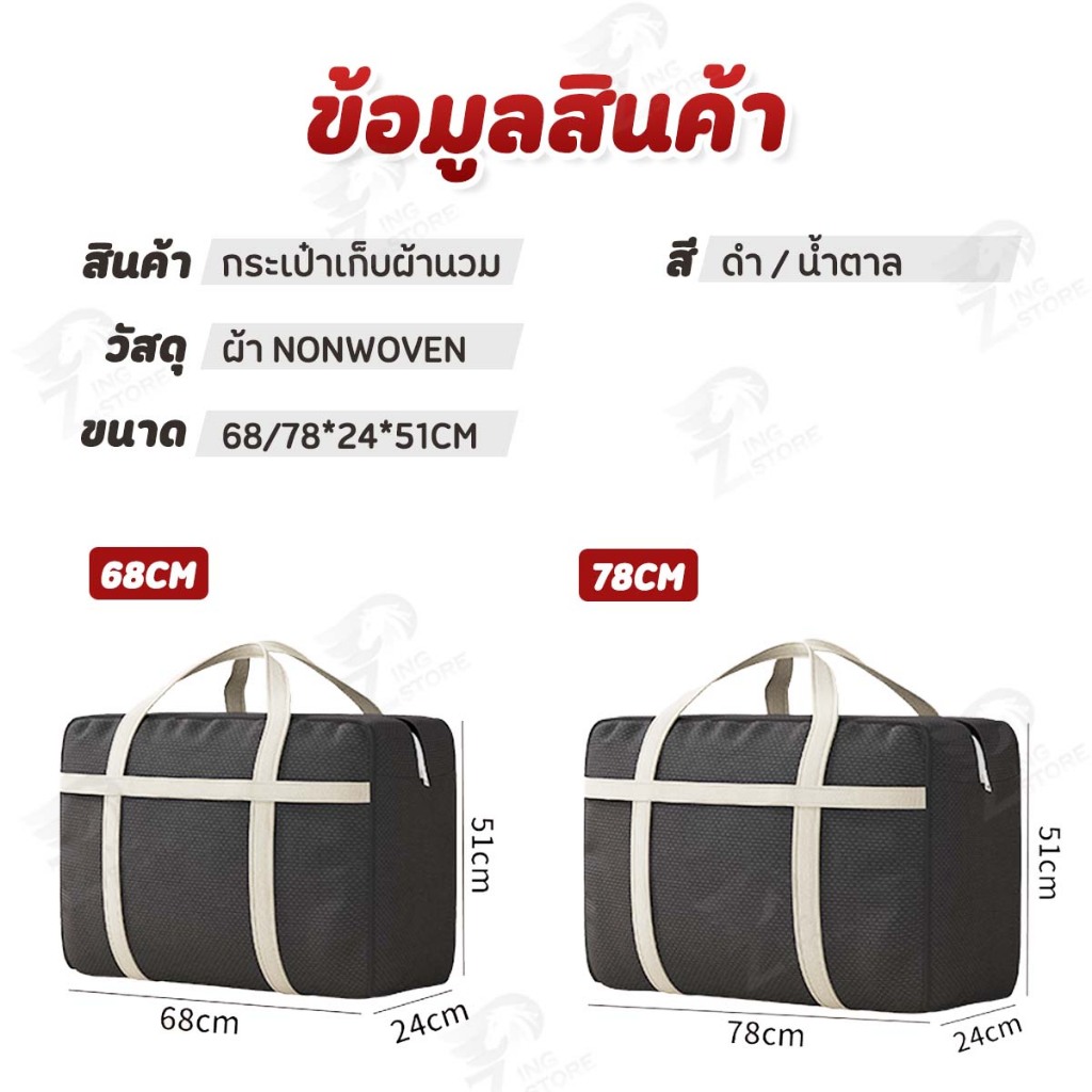 [ความจุใหญ่ 68/78 ลิตร] กระเป๋าผ้านวม กระเป๋าขนาดใหญ่ ถุงใส่ผ้า กันน้ำ กันฝุ่น มีหูหิ้ว สําหรับใส่เครื่องนอน ผ้าห่ม GF