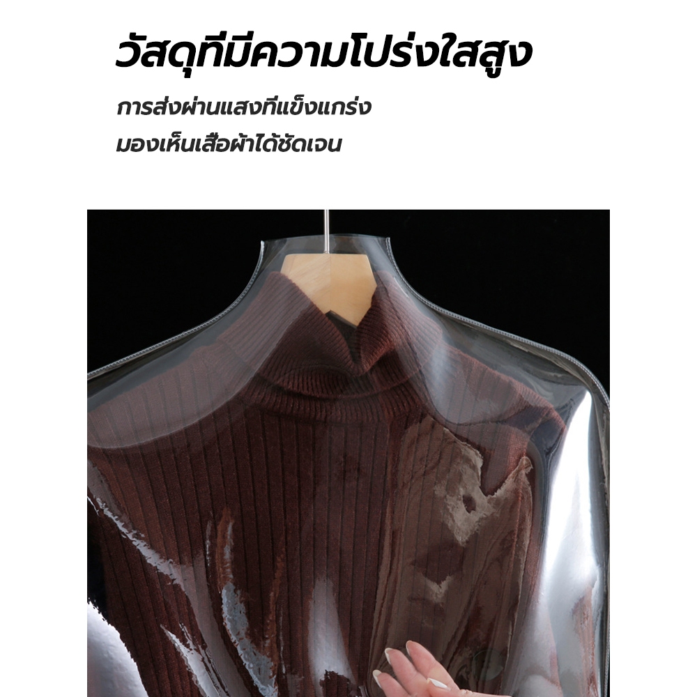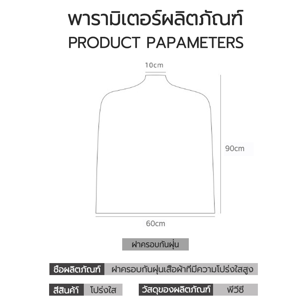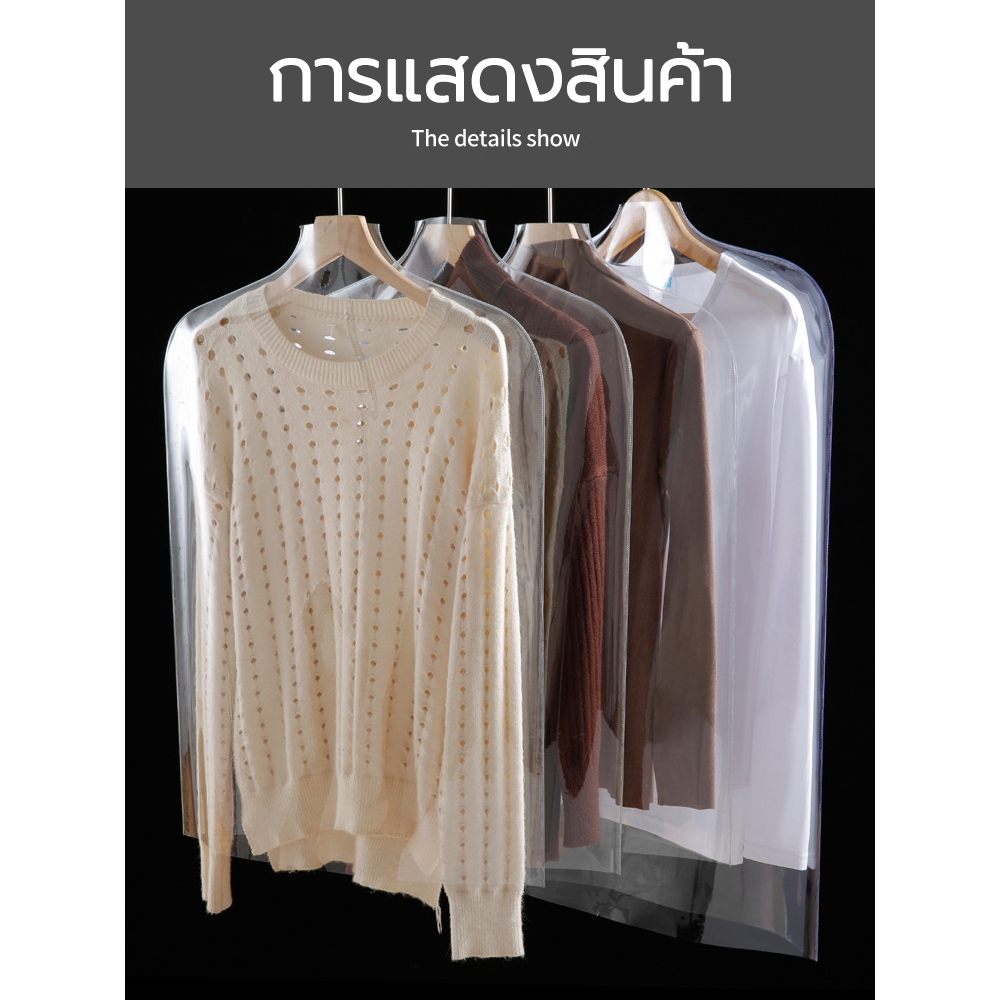 [10 ใบ] ถุงคลุมเสื้อแบบใส ถุงคลุมเสื้อแบบเกรดพรีเมี่ยม วัสดุPVCหนา ใช้ซ้ำ ดูแลง่าย กันน้ำและกันฝุ่น ขนาด 60*90ซม