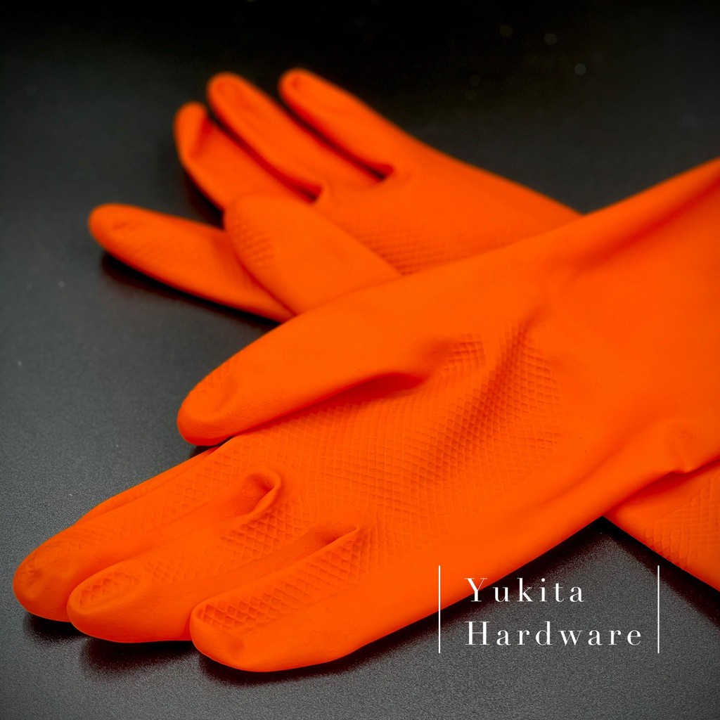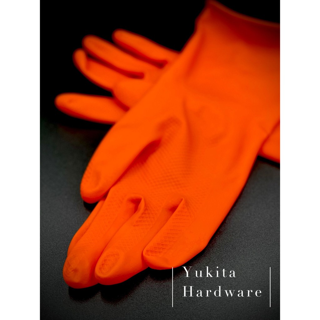 ( 1 คู่ ) ถุงมือยางธรรมชาติสีส้ม STAR ถุงมือเอนกประสงค์ ใส่สบาย (ความกว้างมือ 9.5 cm.) ราคาถูก คุณภาพดี