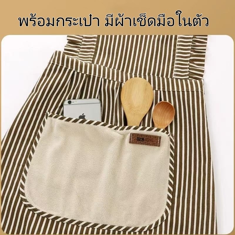 ??พร้อมส่ง?ผ้ากันเปื้อน ผ้ากันเปื้อนทำอาหาร สไตล์เกาหลี สวยน่ารัก ขนาดใหญ่ พร้อมกระเป๋า มีผ้าเช็ดมือในตัว ผ้าแคนวาส