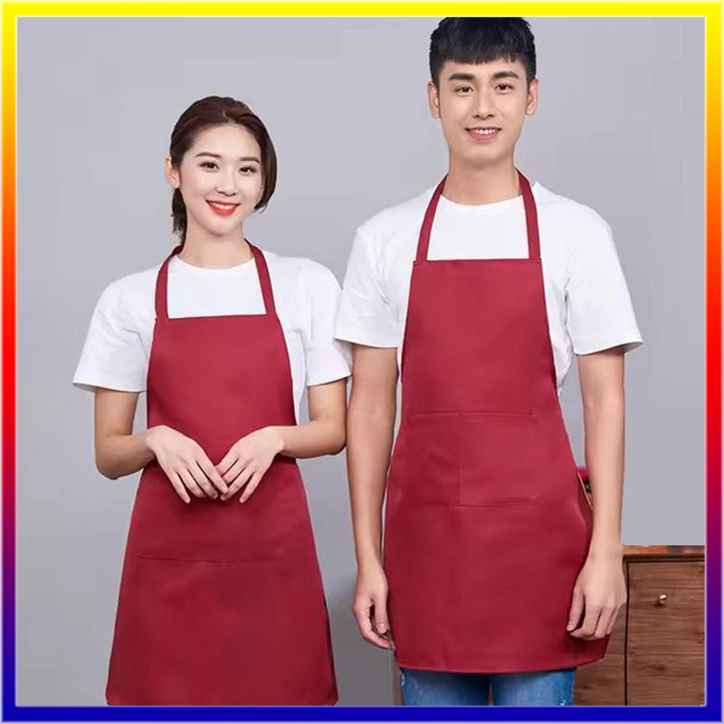 ??【คุณภาพสูง】ผ้ากันเปื้อนครัวกันน้ำ ผ้ากันเปื้อนแขวนคอมีกระเป๋า ผ้ากันเปื้อนเชฟ