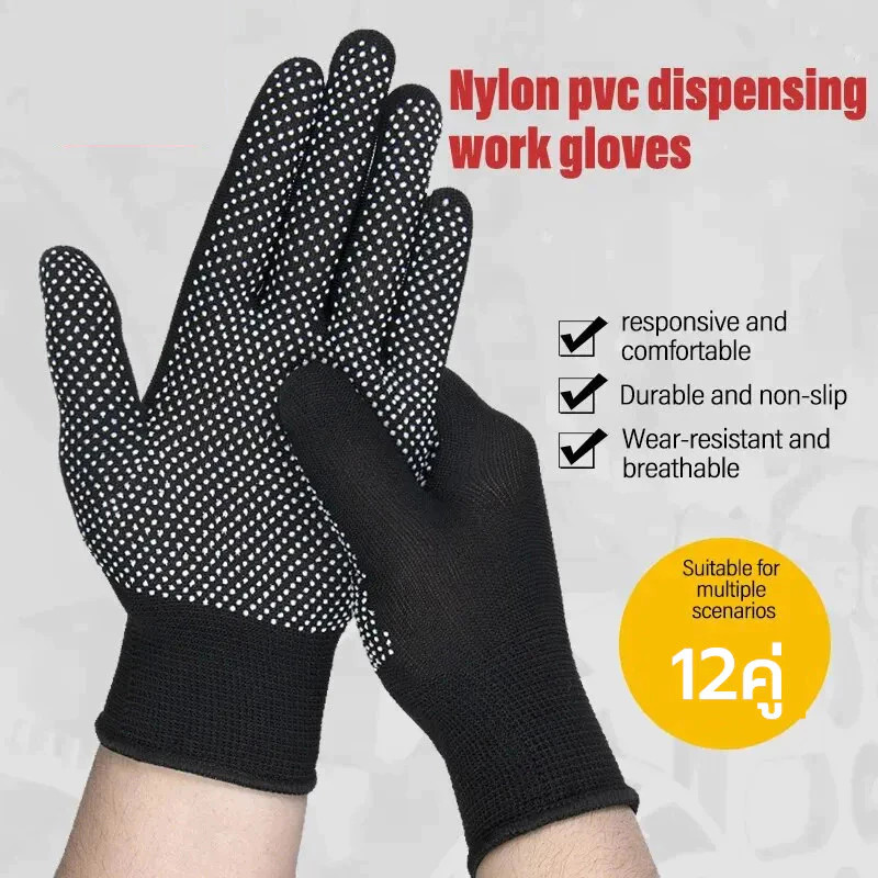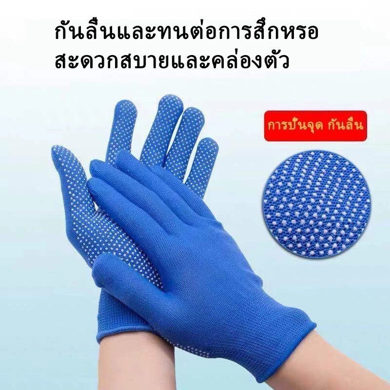 (1โหลมี12คู่) ถุงมือตุ๊กแก ถุงมือปุ่ม ถุงมือทำงาน ถุงมือกันลื่น ถุงมือไนลอน ถุงมือช่าง เพื่อการเกษตรทำสวน