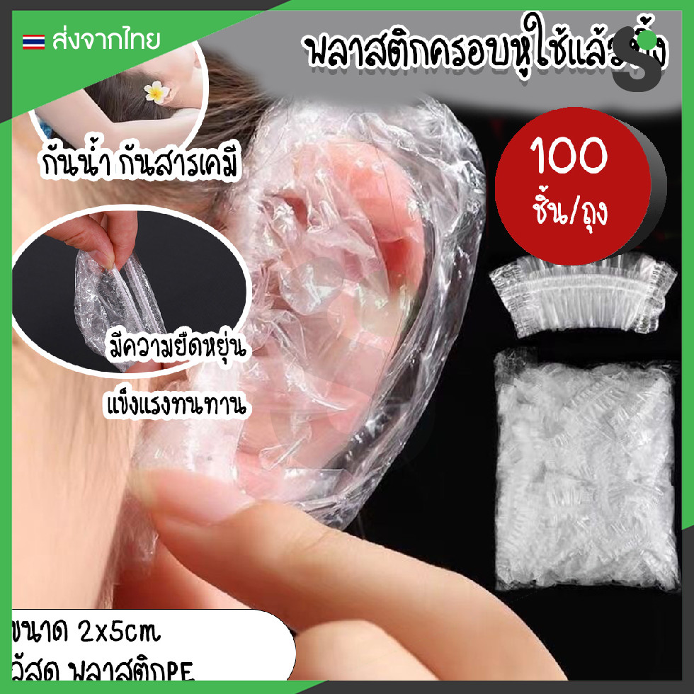 ?ส่งจากไทย? [100ชิ้น/แพ๊ค] ที่ครอบหู ถุงครอบหู พลาสติกครอบหู ใช้แล้วทิ้ง กันสารเคมี กันน้ำ ทำสีผม ย้อมผม ที่ครอบหู