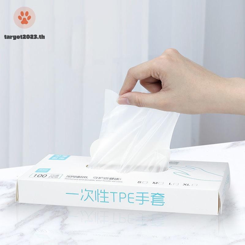 (100 ชิ้น) แบบใช้แล้วทิ้งถุงมือทำอาหาร ถุงมือยาง TPE อาหาร ทนน้ำมัน กันเคม