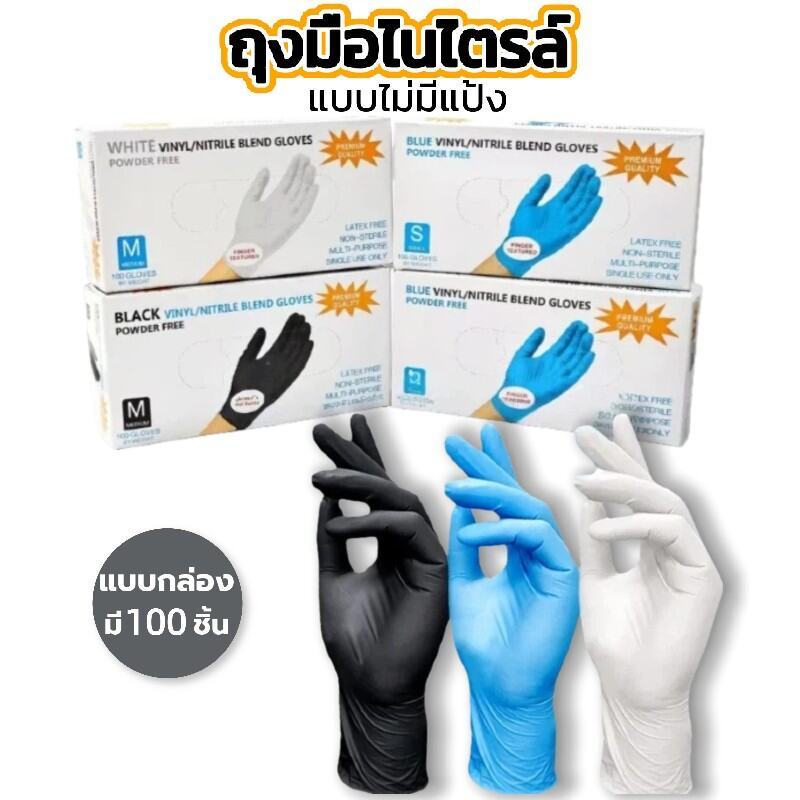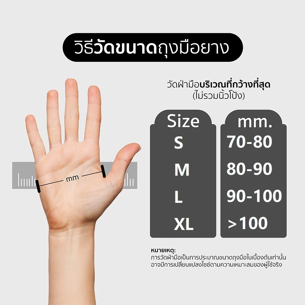 ? ถุงมือยางแบบใช้แล้วทิ้ง ไม่มีแป้ง ทนน้ำมัน กันเคม | 100 ชิ้น/กล่อง – มาตรฐานFood Grade สำหรับทำอาหาร