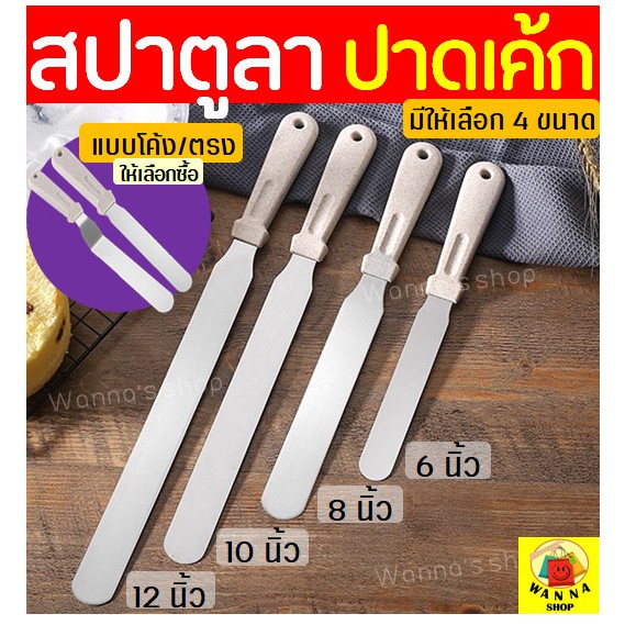 ?ส่งฟรี? สปาตูล่า สเตนเลสแท้ WANNA รุ่นดับเบิ้ล มีให้เลือกทั้งแบบตรง / แบบงอ ขนาด 6 8 10 12 นิ้ว ที่ปาดเค้ก 152-159