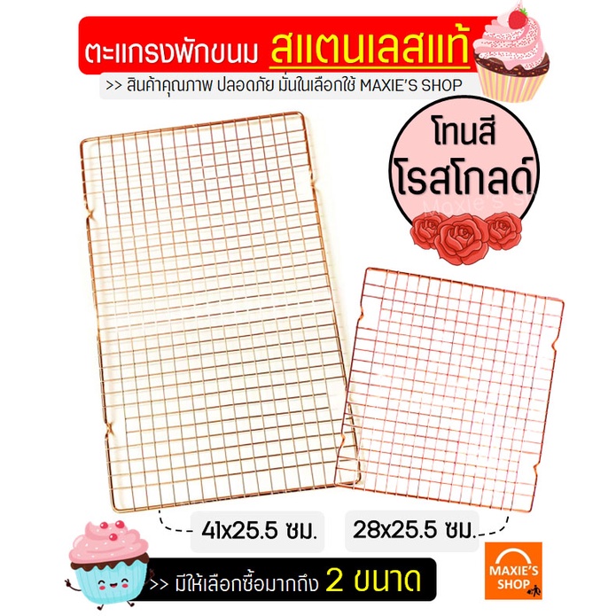 ?ส่งฟรี? ตะแกรงพักขนม สแตนเลสแท้สีโรสโกลด์ MAXIE(มีให้เลือก2ขนาด!) ตะแกรงวางขนม ตะแกรงพักเค้ก ตะแกรงวางพักขนม ตะแกรงพัก
