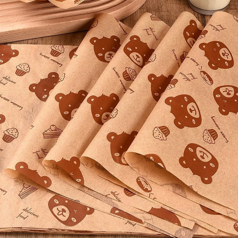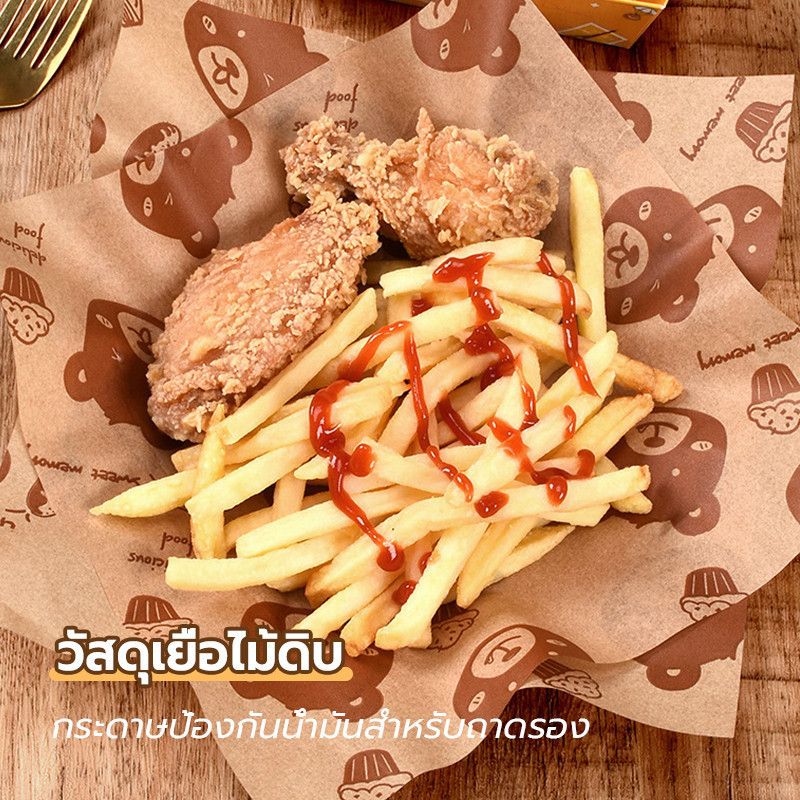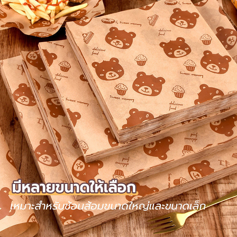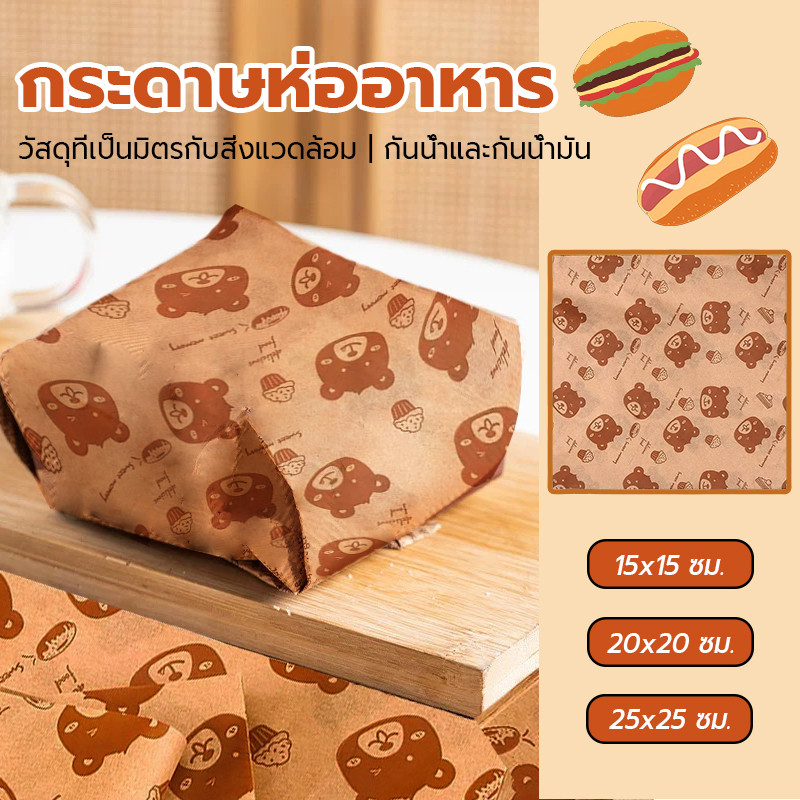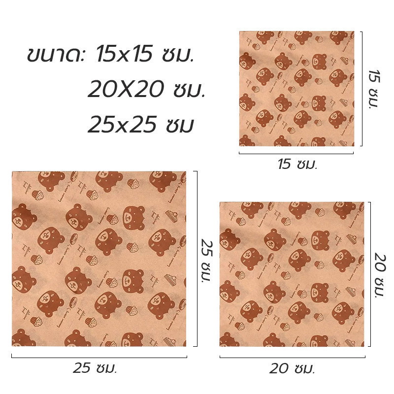 ?กระดาษห่อแซนวิช เบอร์เกอร์ เบเกอรี่ กระดาษห่ออาหาร (50ใบ) กระดาษรองอบขนม ขนาด 15*15/20*20/25*25 cm