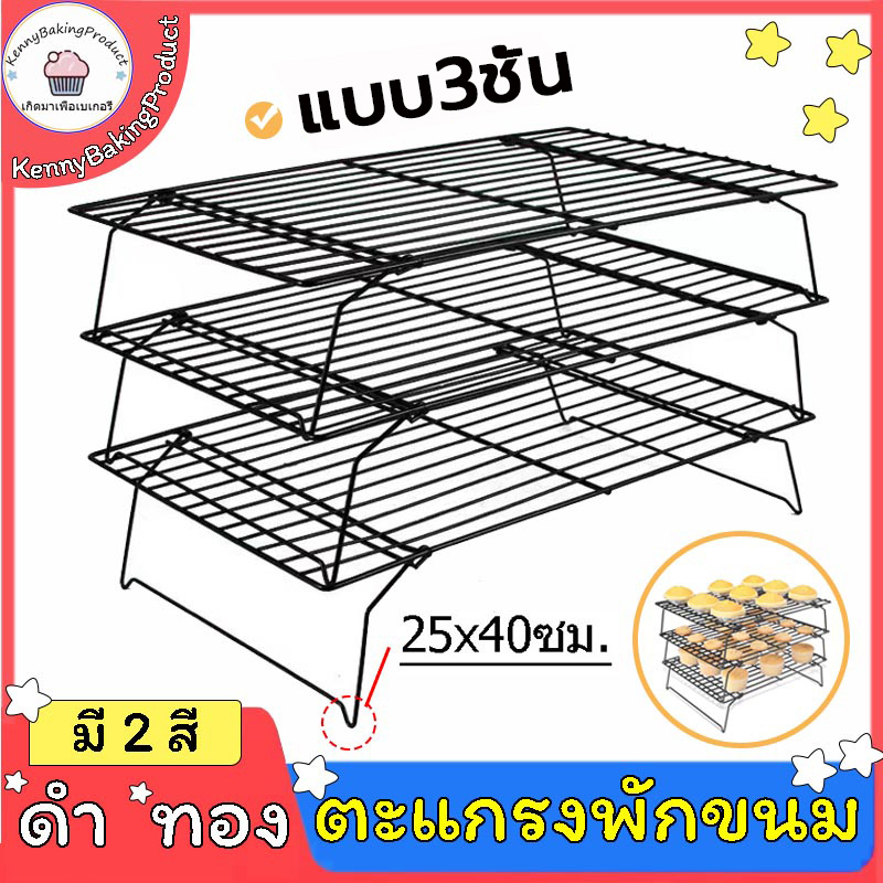 ?ส่งฟรี? ตะแกรงพักขนม แบบ3ชั้น 2สี (ดำ/ทอง) ตะแกรงพักเค้ก ตะแกรงวางขนม ตะแกรงวางพักขนม ตะแกรงพักเค้ก