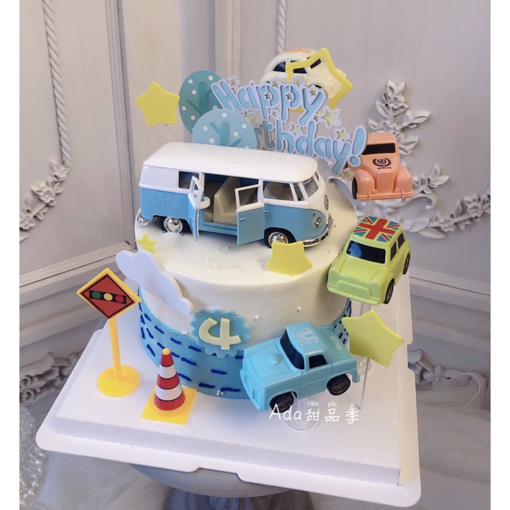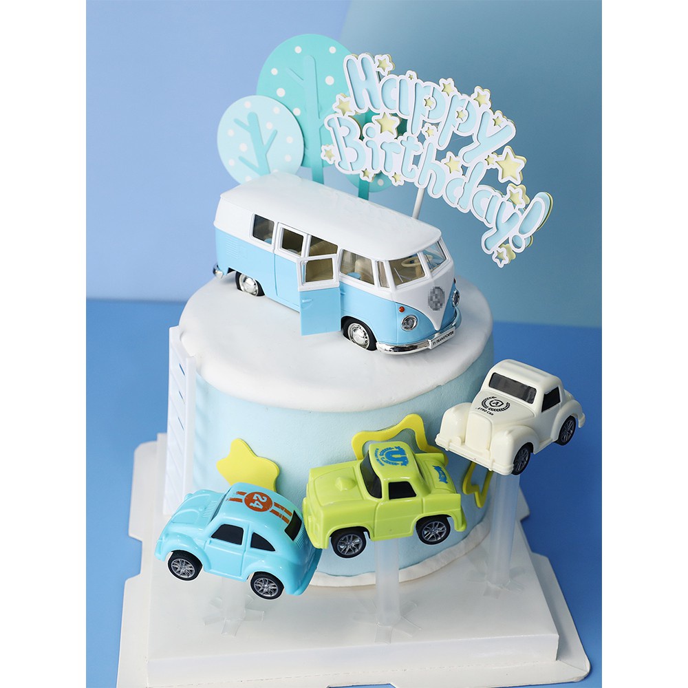 โมเดลรถบัส ขนาดเล็ก ของเล่นสําหรับเด็ก ตกแต่งเค้ก