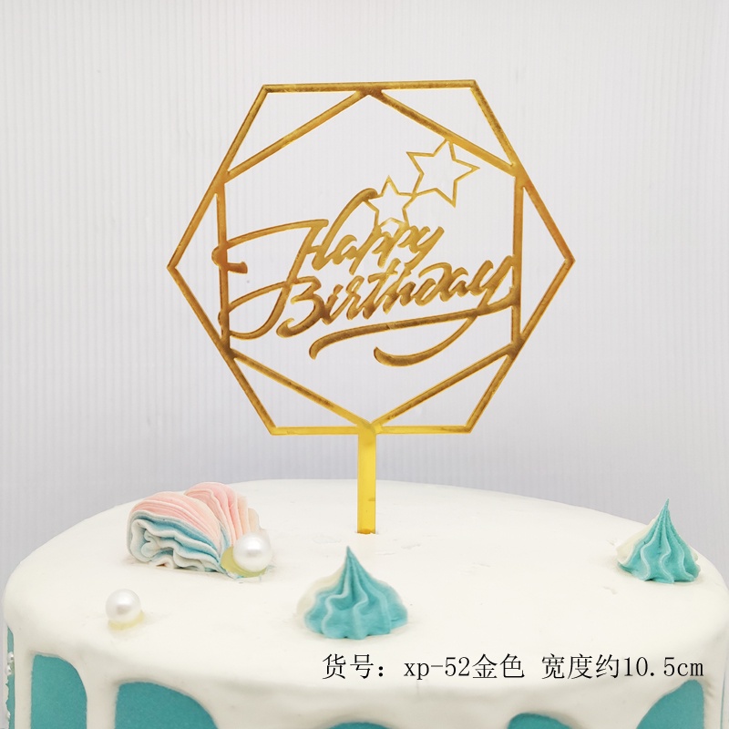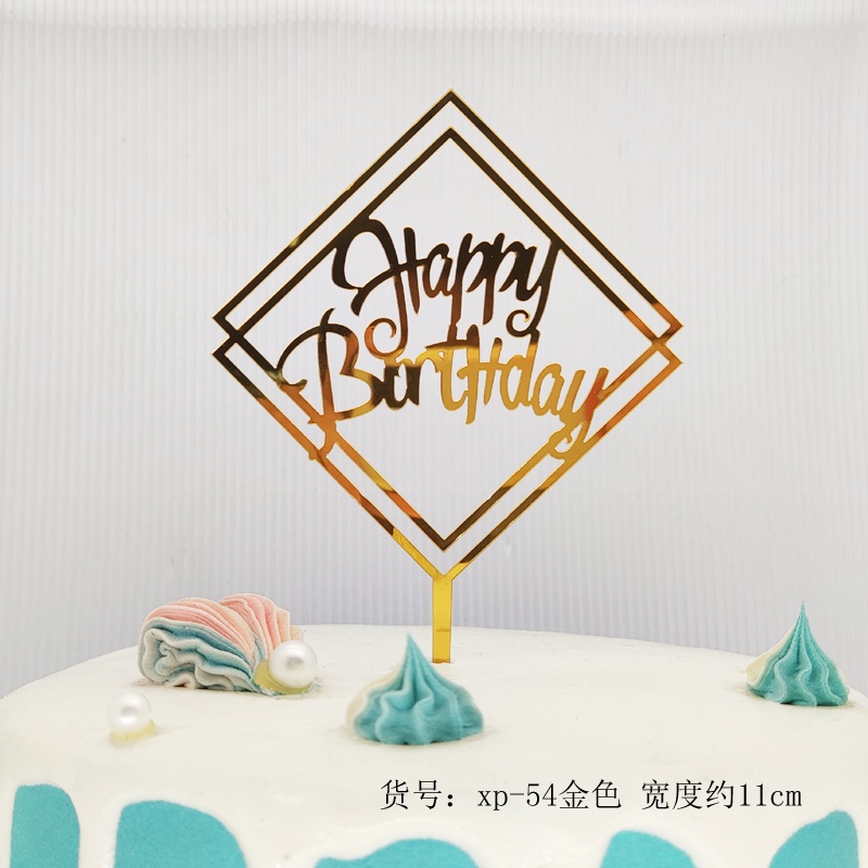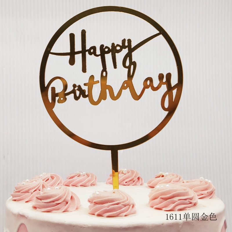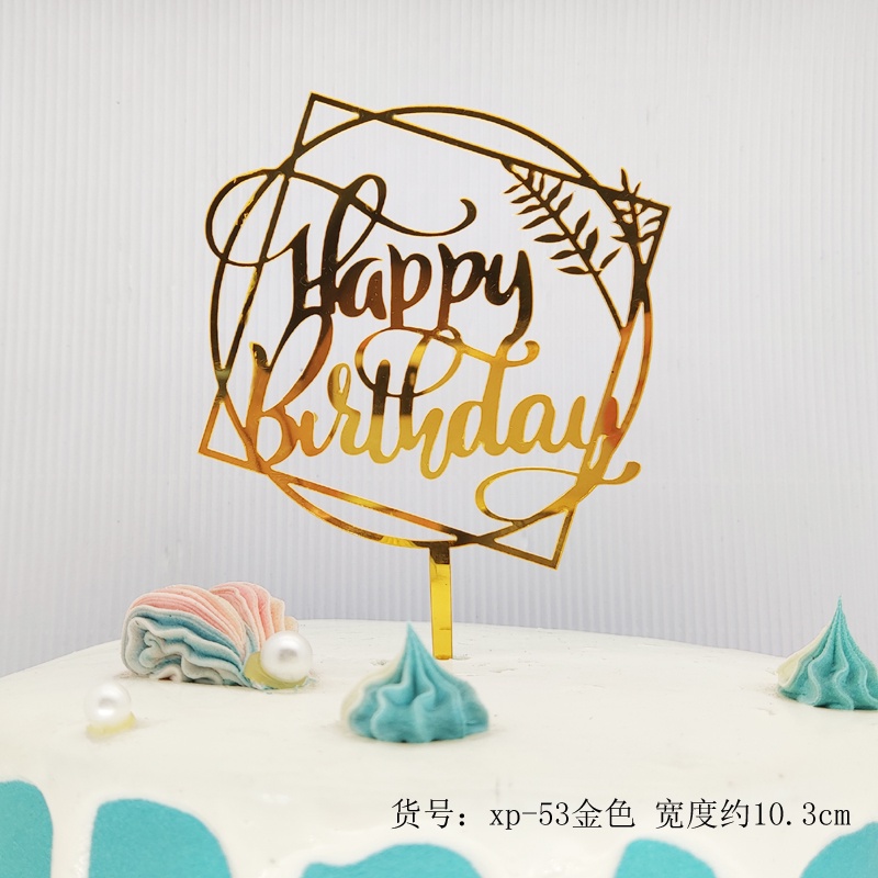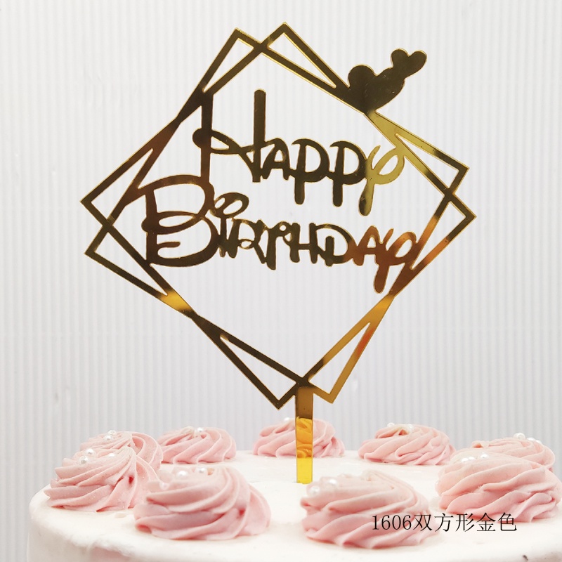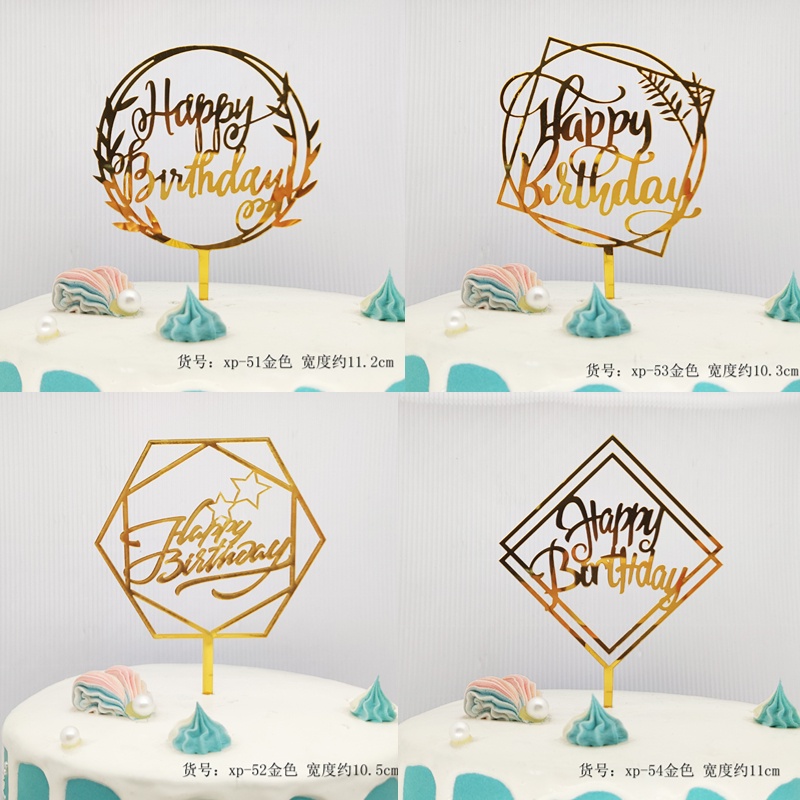 ใหม่สีพิมพ์ดอกไม้สุขสันต์วันเกิดเค้กตกแต่งการ์ดแทรกทองเงินอะคริลิเบเกอรี่ขนมตารางแทรก