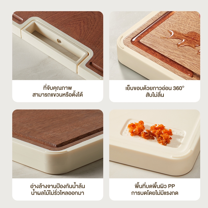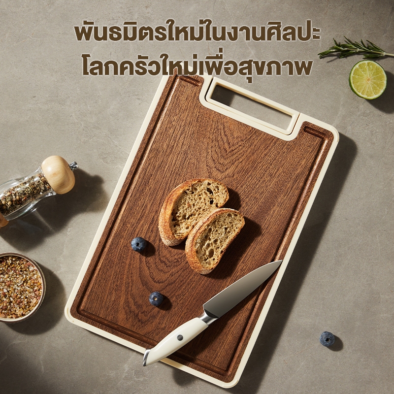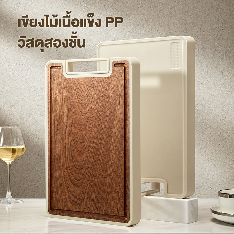 Ecowin เขียงไม้เนื้อแข็งสองด้าน อีกด้านวัสดุPPเกรดอาหาร ต้านเชื้อแบคทีเรีย ไม่เป็นเชื้อรา ไม่สะสมเชื้อโรคเหมาะสำหรับครัวเรือน