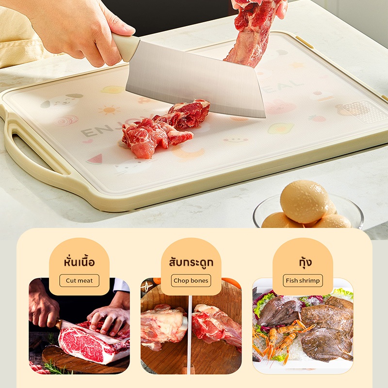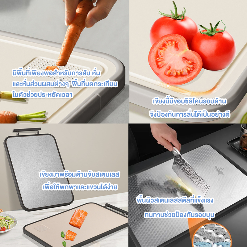 【KAGK】เขียง(pp+ สแตนเลสเกรด 304)วัสดุสองด้านสามารถทําลายอาหารดิบอาหารปรุงสุกใช้สามารถยืนใช้ได้ทั้งเด็กใช้ได้หลายคน