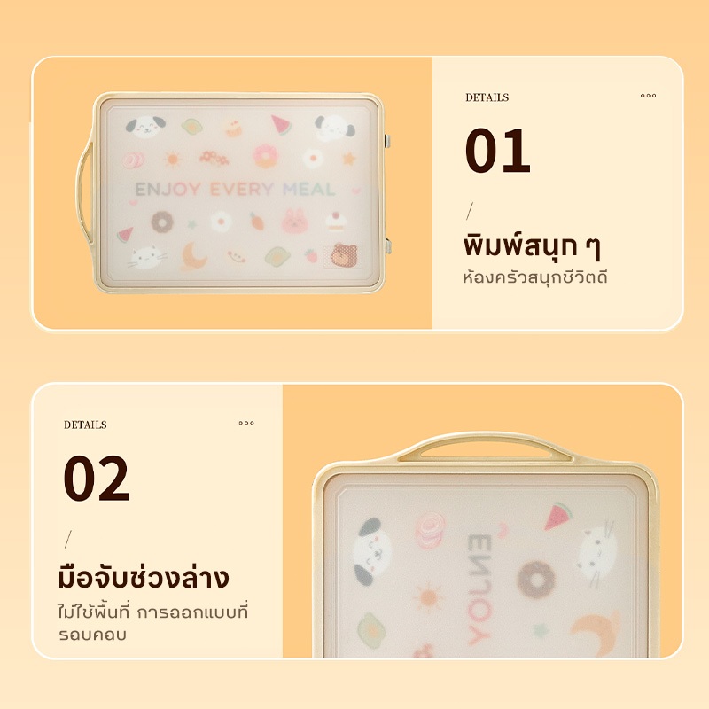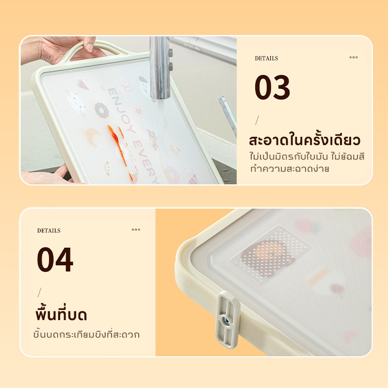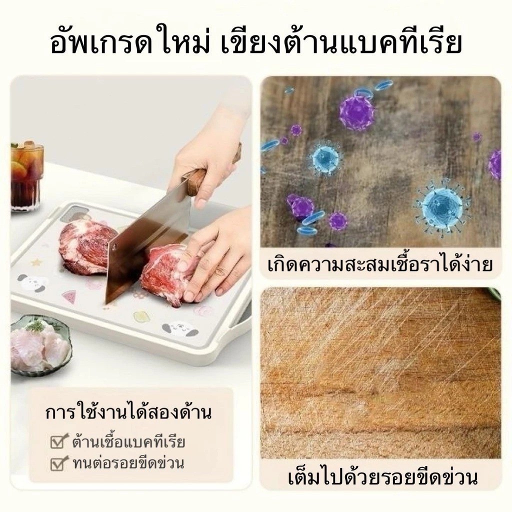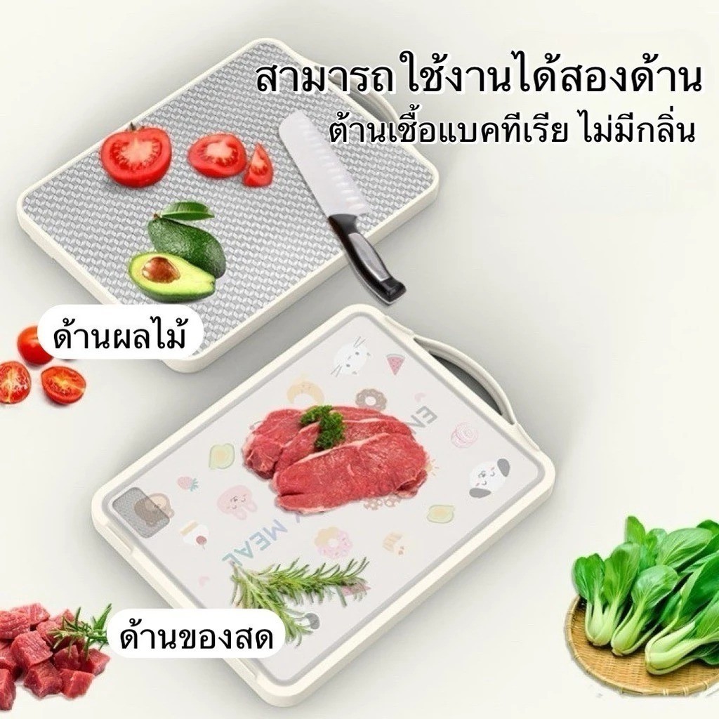 【ซตเขียงพลาสติก】ชุด 5 ชิ้น เขียง (พร้อมชั้นเก็บของ) กันลื่น ป้องกันแบคทีเรีย สองด้าน เครื่องครัว