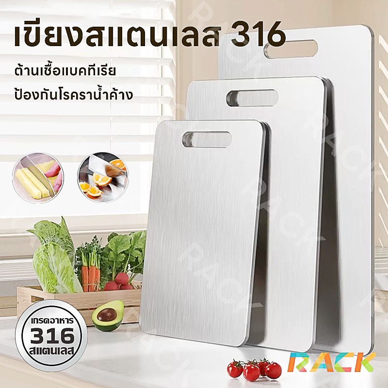 cod 39x28cm เขียงสแตนเลส 316 หนา เขียง เกรดอาหาร ทำความสะอาดง่ายและไม่ขึ้นรา ไม่มีกลิ่นเหม็น ปลอดภัยต่อสุขภาพอนามัย