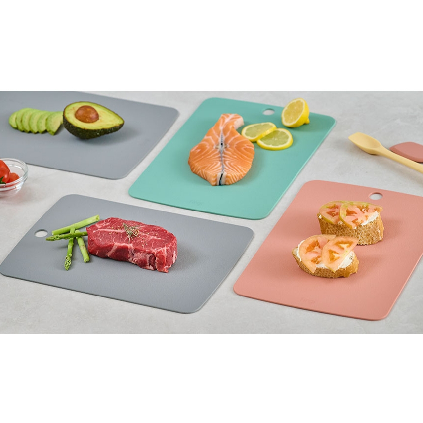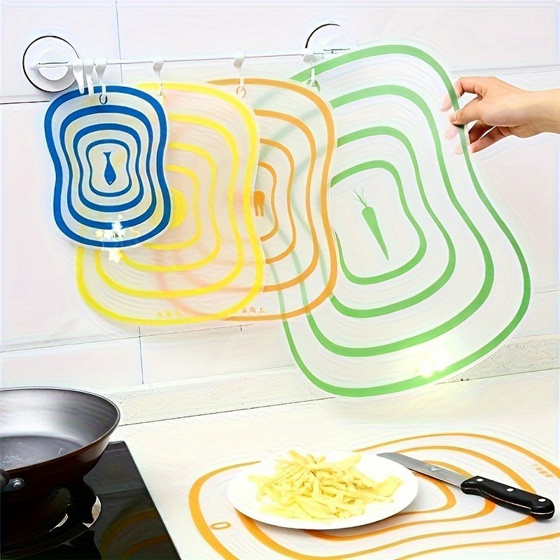 [H&L]เขียงในครัว 4 ชิ้นพร้อมพื้นผิวฝ้ากันลื่น | การออกแบบที่มีความยืดหยุ่นบาง (0.1 ซม.) & รูแขวนสําหรับจัดเก็บขนาดกะทัดรัด (20/30 ซม. พลาสติก หน้า)
