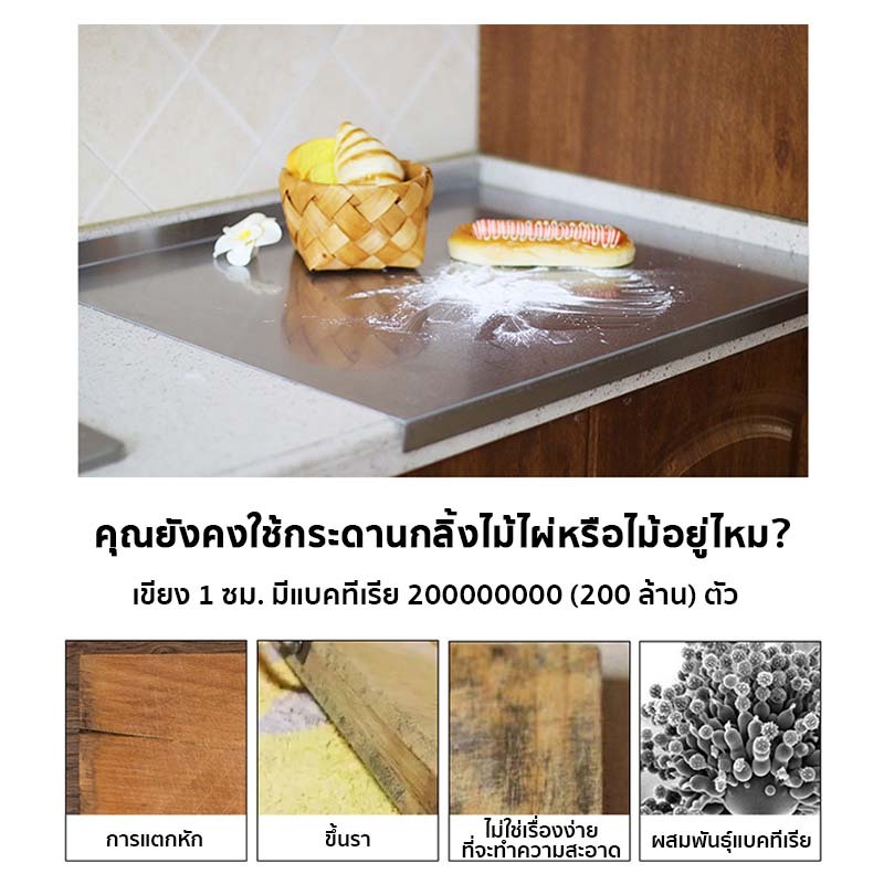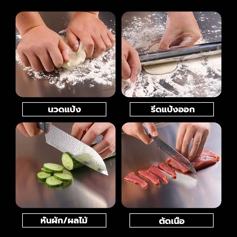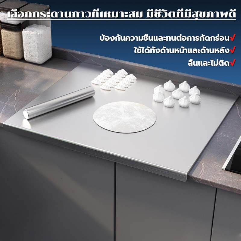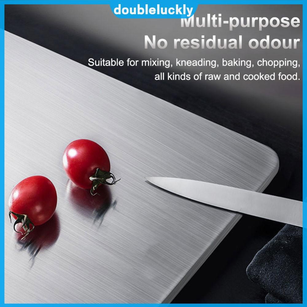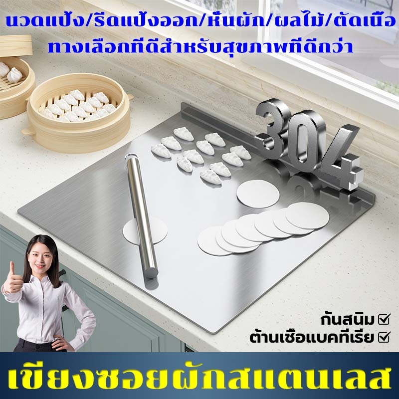 ✿ดล1♣ เขียงสแตนเลส กระดานแป้งนวดสองด้านหนากระดานขนมทําความสะอาดง่ายสําหรับห้องครัวสําหรับเนื้อผักผลไม้อาหารเด็ก