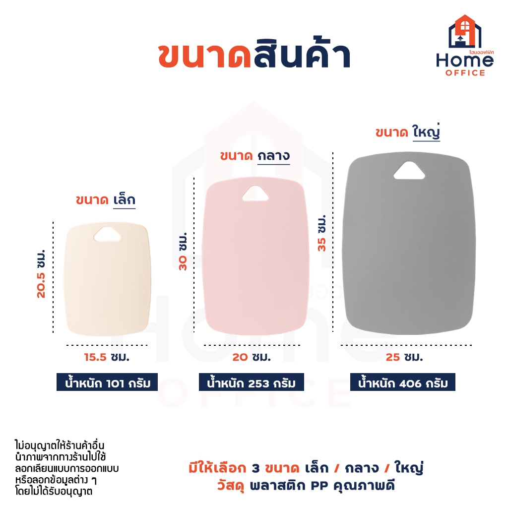 Home Office เขียงพลาสติก (3 สี 3 ขนาด) สีพาสเทล มีให้เลือก 3 ขนาด เล็ก กลาง ใหญ่ เขียงหั่นผัก เขียงหั่นเนื้อ