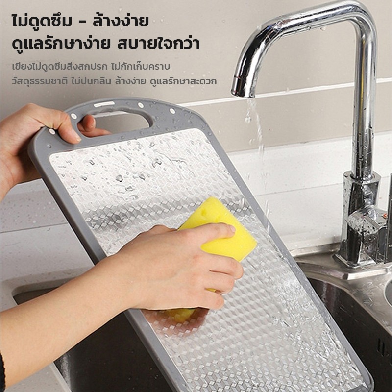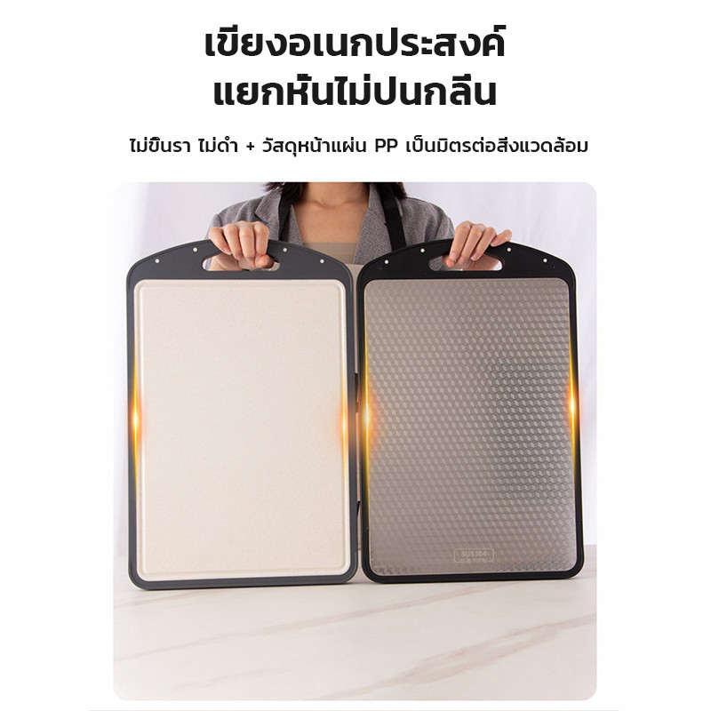 เขียง?(pp+ สแตนเลสเกรด 304 ) ตั้งได้ แบบหนา ป้องกันเชื้อรา แยกอาหารดิบและอาหารปรุงสุก ใช้ได้สองด้าน