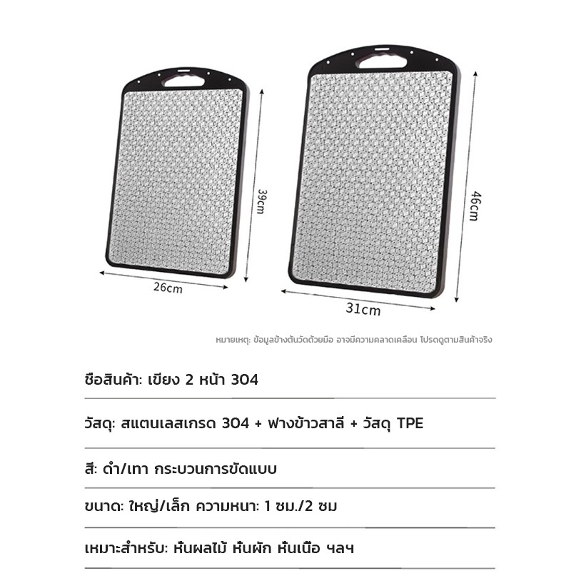 เขียงสเตนเลส 304+PP เขียง เขียงครัว สองด้าน ไม่เสี่ยงต่อแบคทีเรีย ไม่แตกร้าว ล้างทันทีและไม่ทิ้งสารตกค้าง