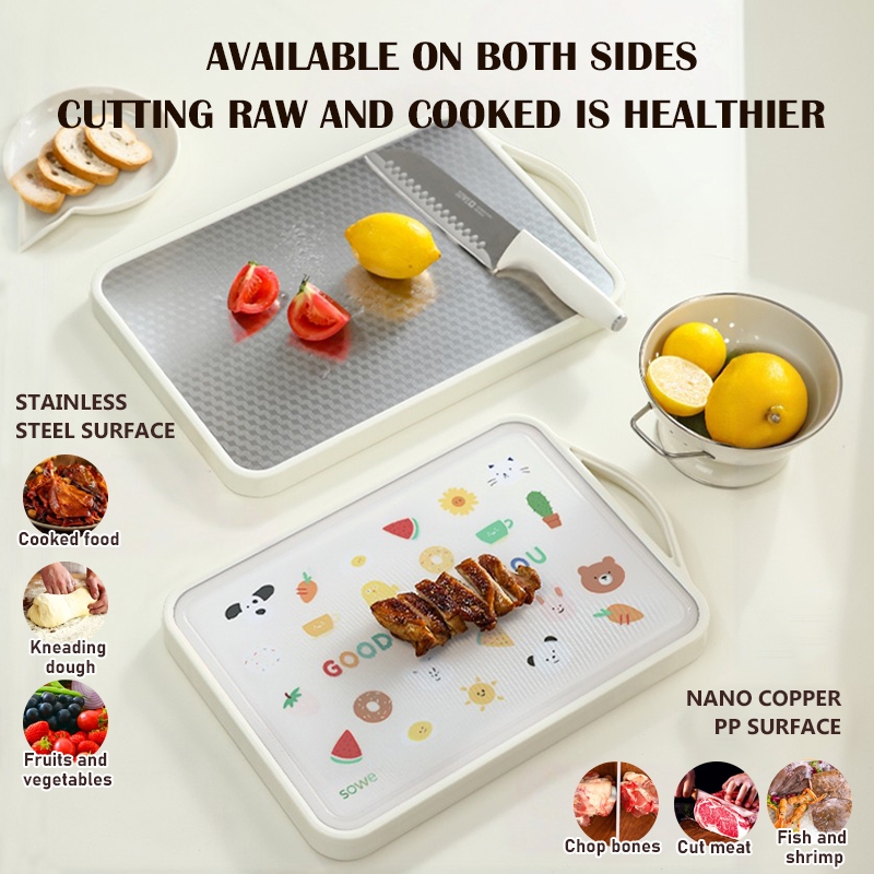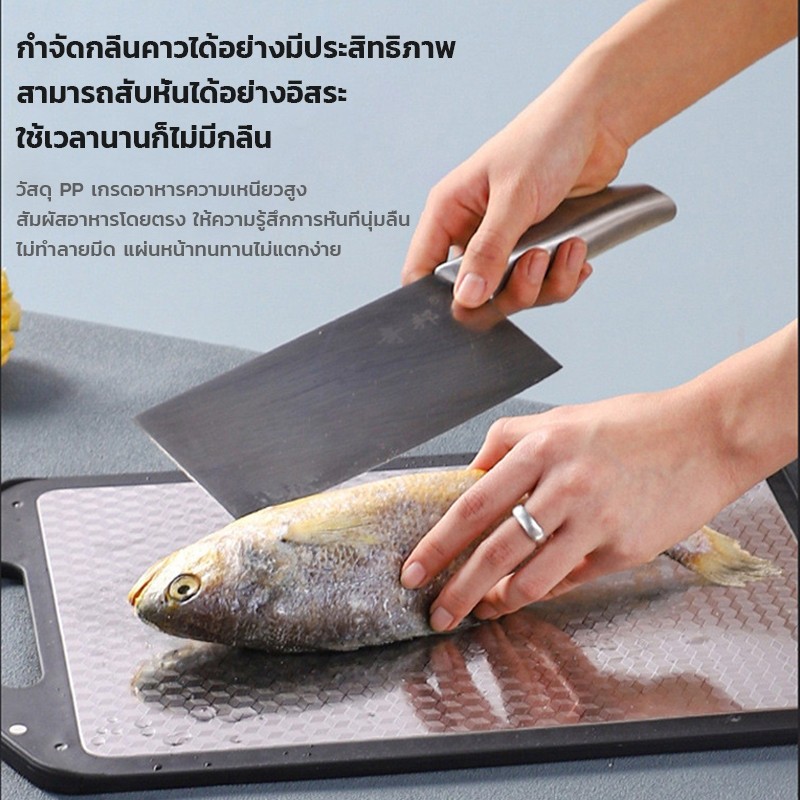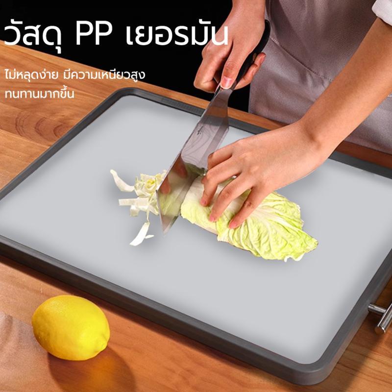 เขียงสแตนเลส Iเขียงพลาสติก pp+TPR+ สแตนเลส ใช้งานได้สองด้านหั่นผัก ผลไม้ ของสด เขียงหั่น ต้านแบคทีเรีย
