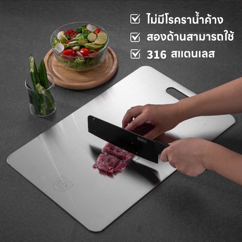 เขียงสแตนเลส 316 หนา เขียง เกรดอาหาร ทำความสะอาดง่ายและไม่ขึ้นรา ไม่มีกลิ่นเหม็น ปลอดภัยต่อสุขภาพอนามัย