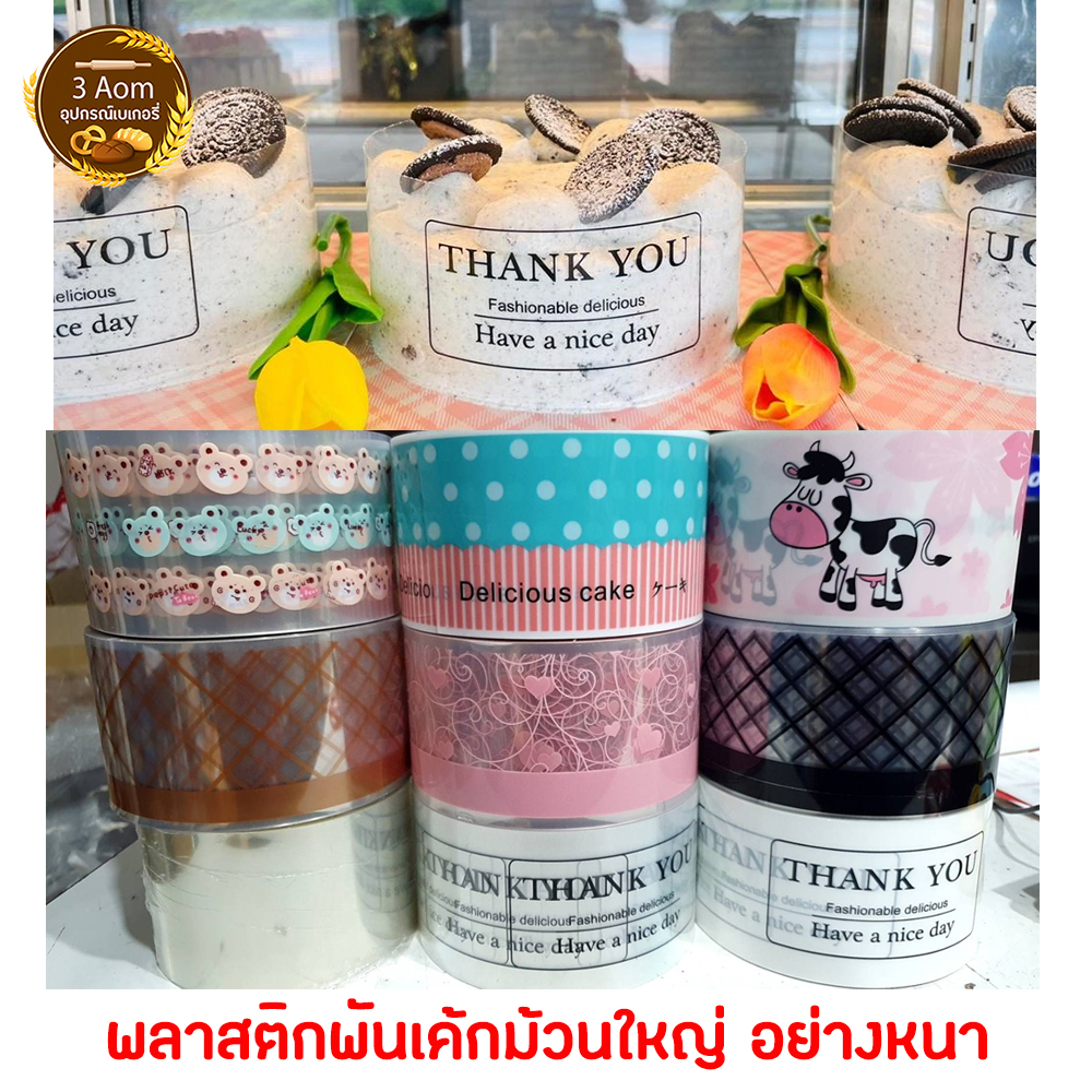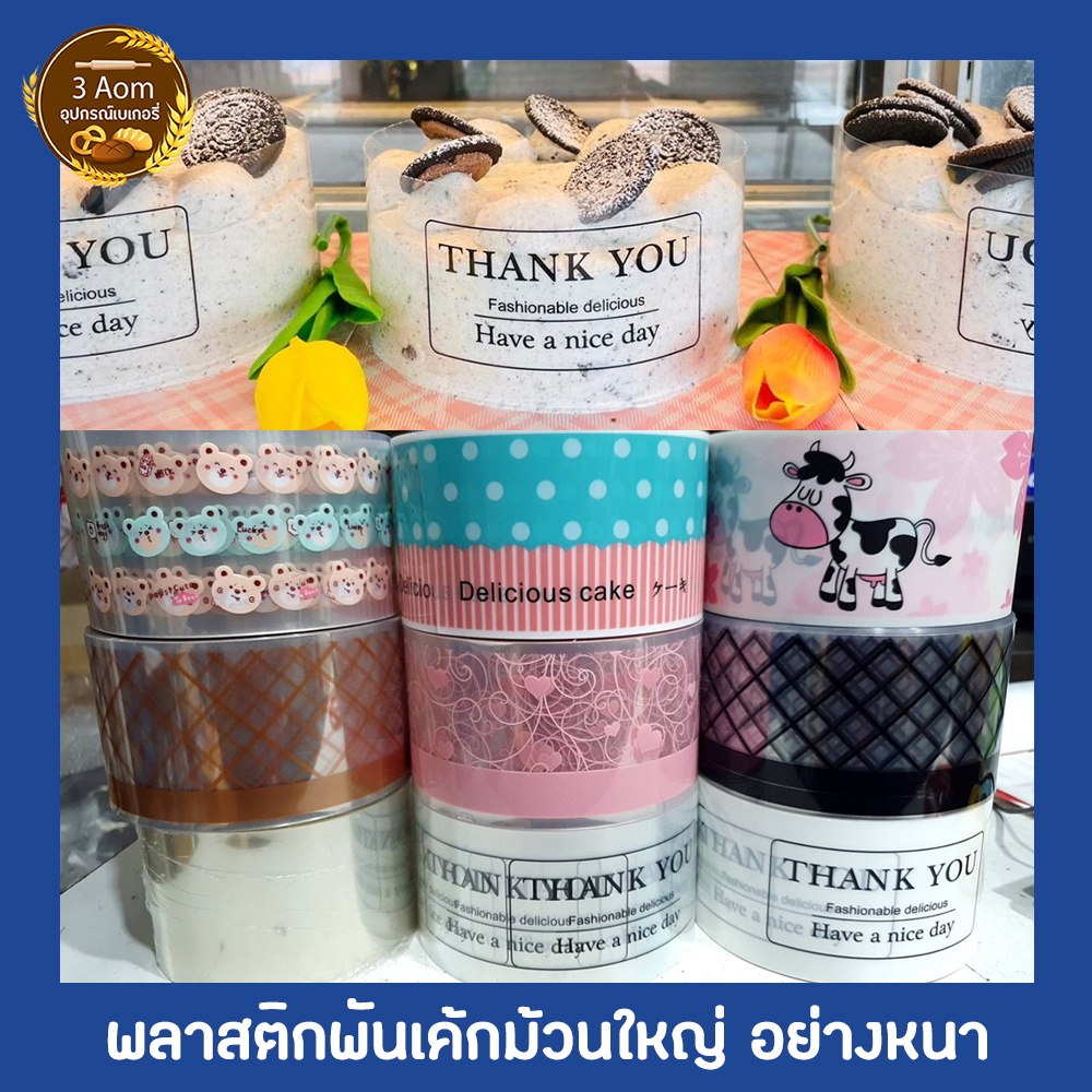 (ม้วนใหญ่ ยาวประมาณ 60 เมตร) พลาสติกพันเค้ก แบบแข็งหนา พลาสติกพันเค้กหน้านิ่ม กว้าง 8 ซม และ 10 ซม. ๅ