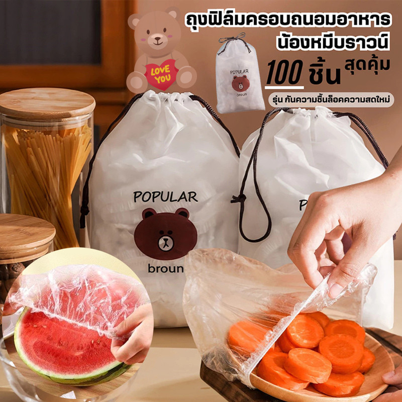 ?ฟิล์มห่ออาหารหมีบราวน์(100ชิ้น/แพ็ค) ?ถุงครอบถนอมอาหาร ชั้นฟิล์มห่ออาหาร แรปถนอมอาหาร ฟิล์มยืด รักษาความสดใหม่ของอาหา