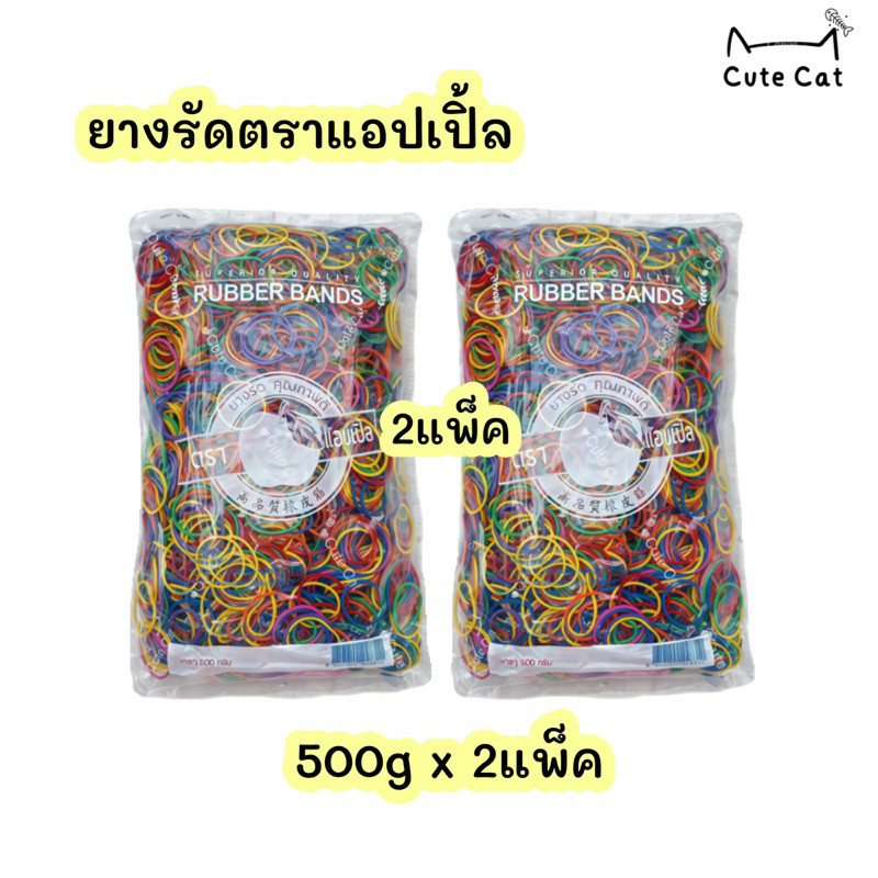 ?หนังยางรัดของวงเล็ก 2ห่อ1กิโลกรัม?ตราแอปเปิล? ยางรัดแกงคละสี