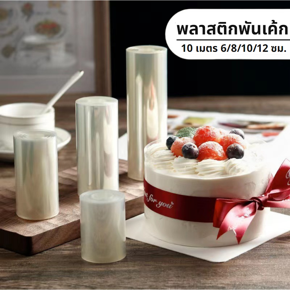 [B047]พลาสติกพันเค้ก แบบม้วน ยาว 10 เมตร เกรดอาหาร เนื้อแข็ง กว้าง 4/8 /10/12 ซม.