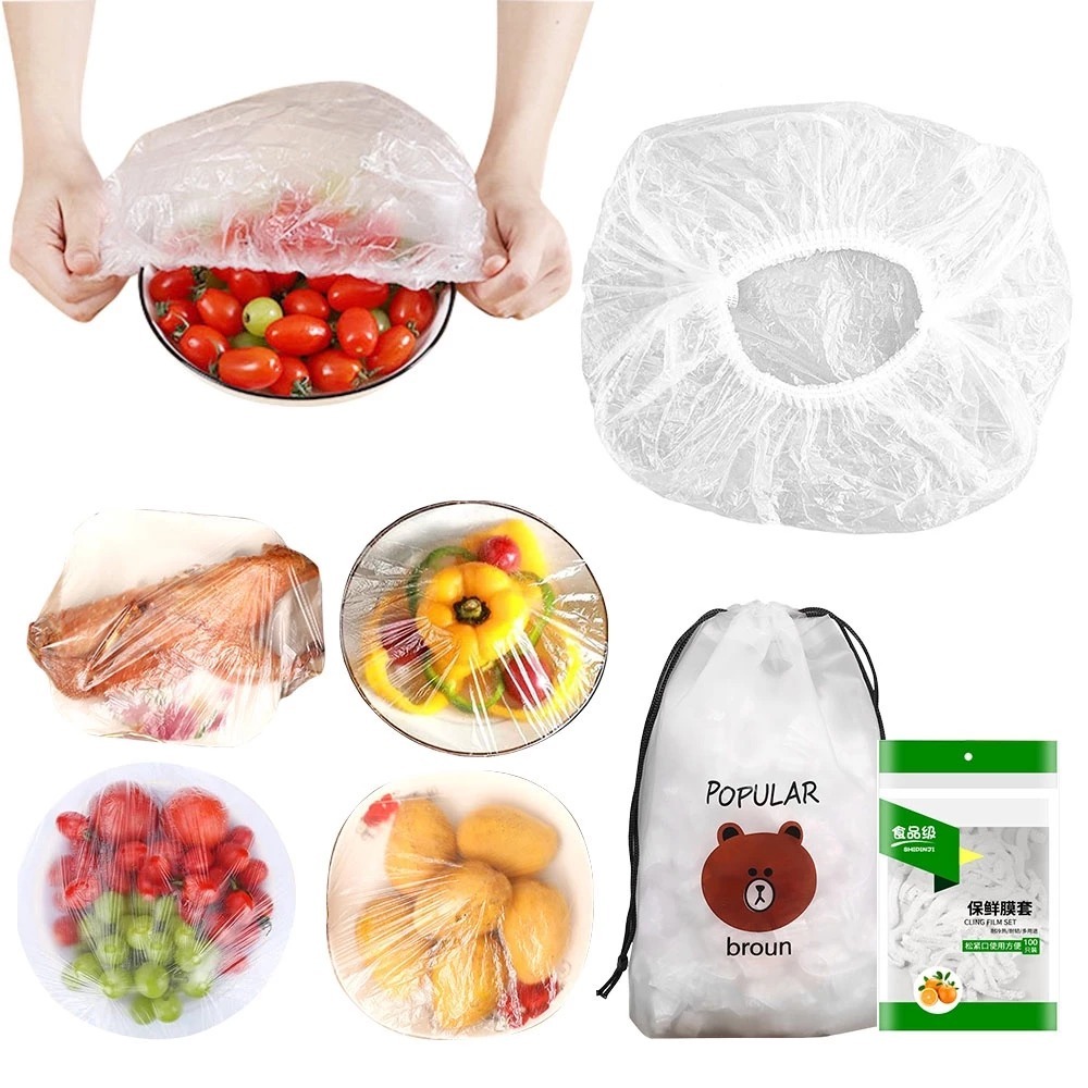 ?ฟิล์มห่ออาหารหรือแรปห่ออาหาร 100/200ชิ้น พลาสติกแบบใช้แล้วทิ้ง ถุง PE ห่ออาหาร เก็บอาหารคุณภาพสูง ฝาปิดตู้เย็นอัตโนมั