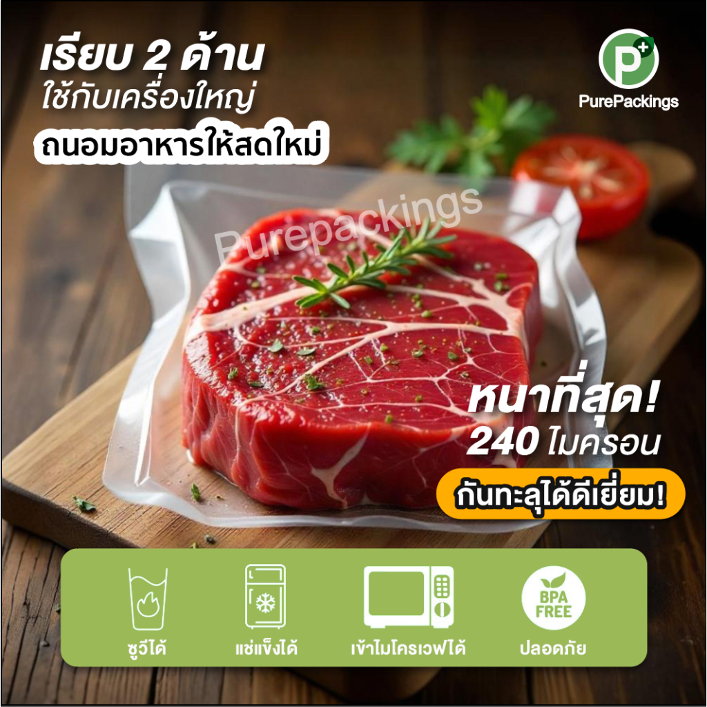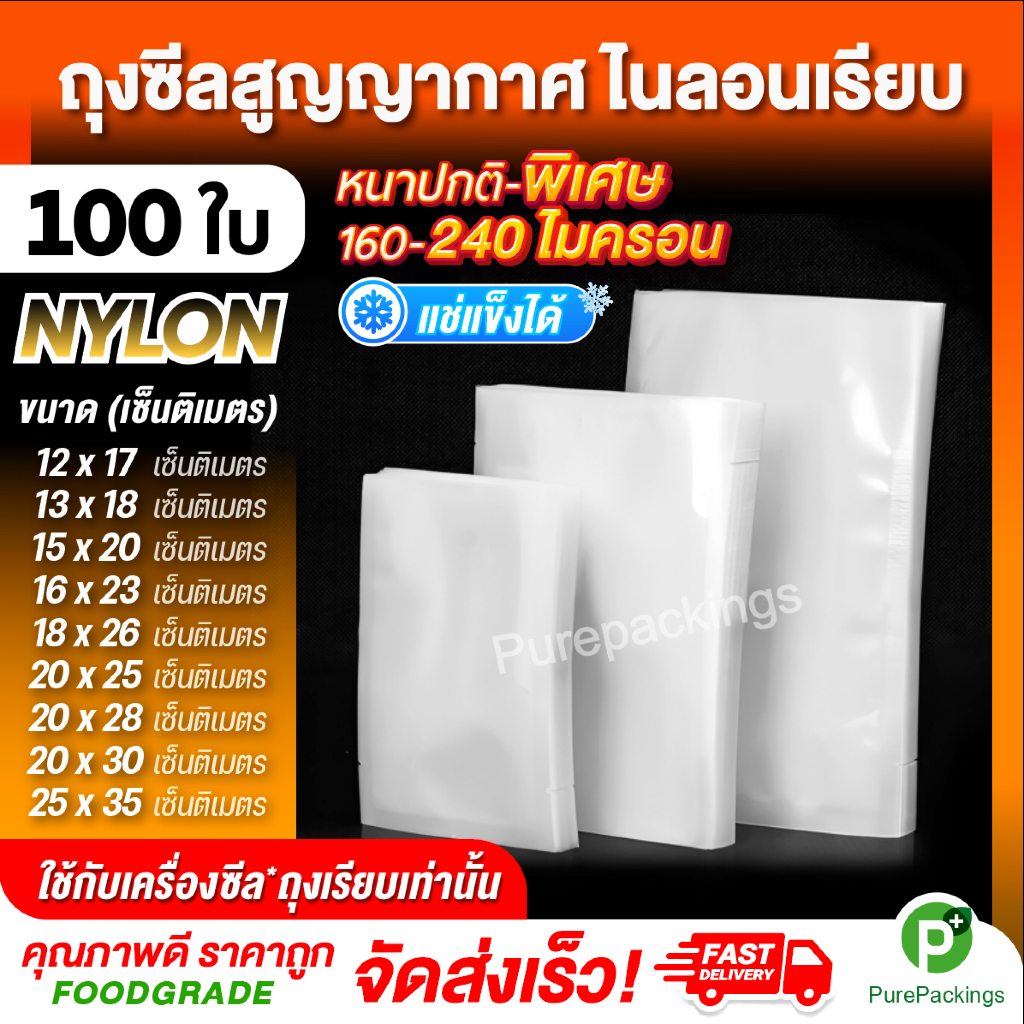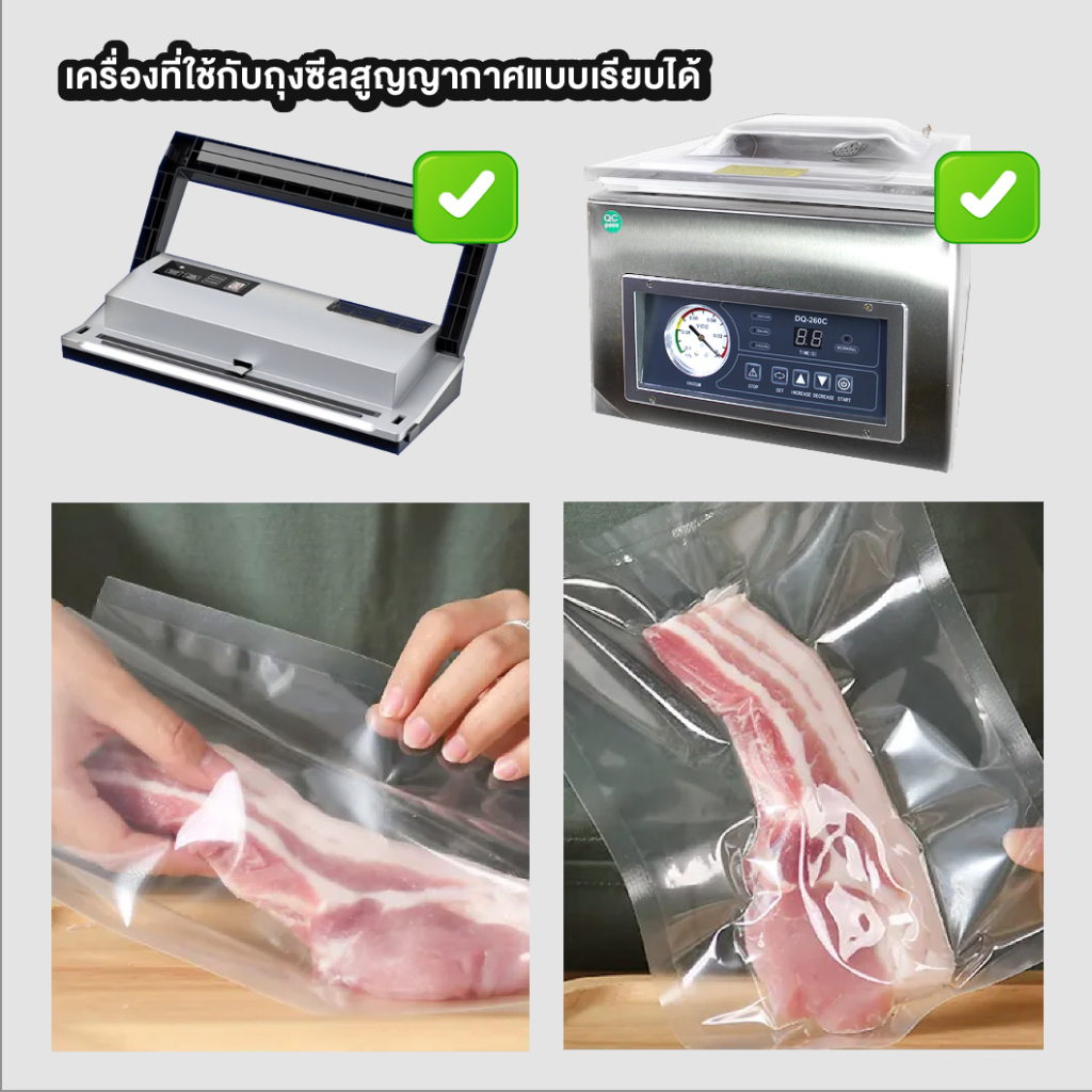 ?ถุงสูญญากาศ ไนลอน?หนาพิเศษ เรียบ2ด้าน (100 ใบ) ถุงซีลสูญญากาศ ใส่อาหาร NYLON Vacuum Bag