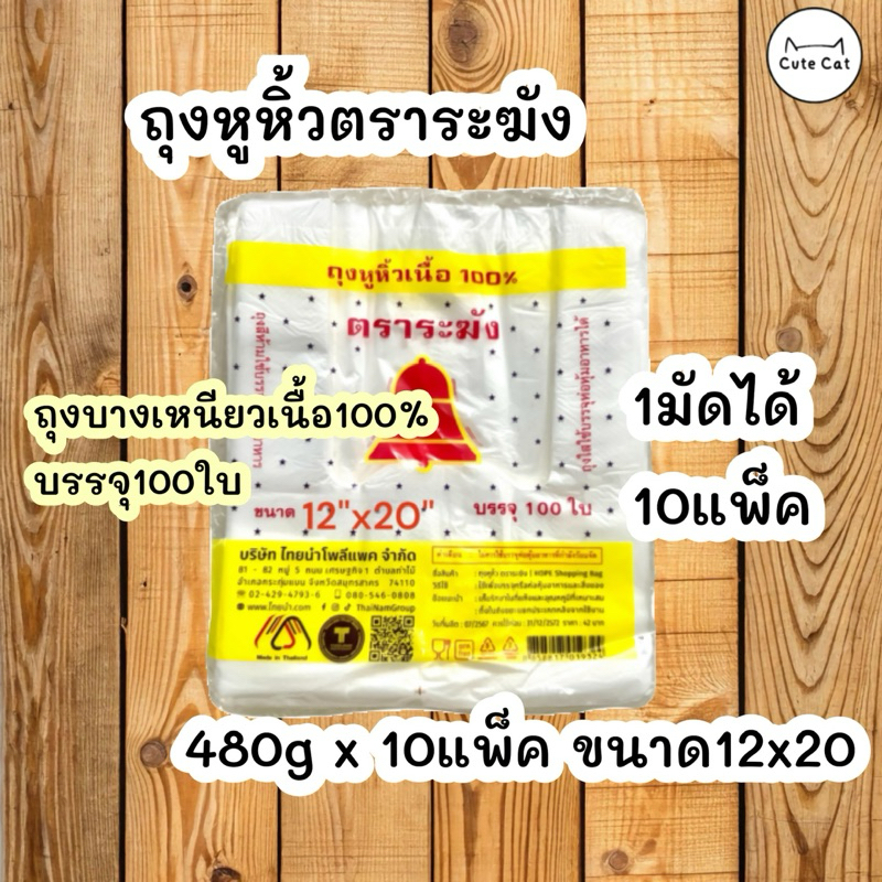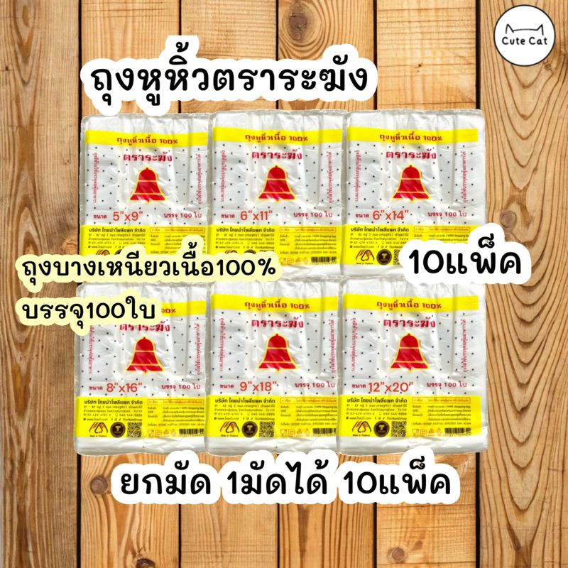 ?1มัด/10ห่อ ถุงหูหิ้วตราระฆัง12×20 เนื้อบาง เกรด A ถุงระฆัง ? บรรจุ 100 ใบ ของแท้ ถุงราคาโรงงาน