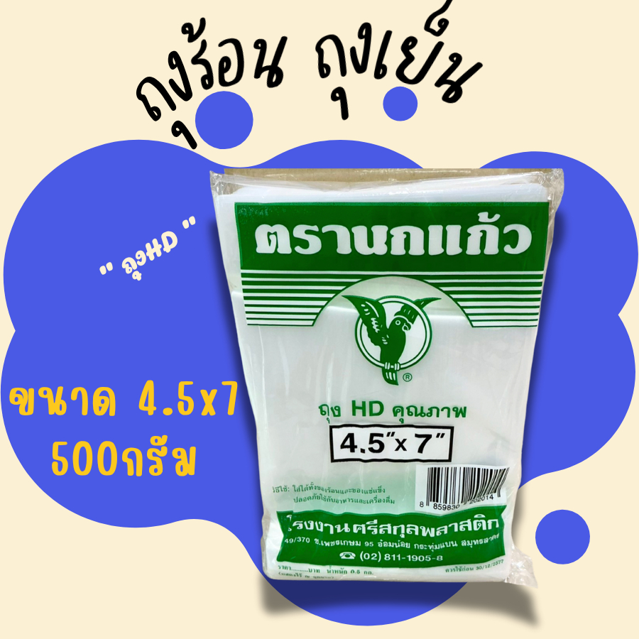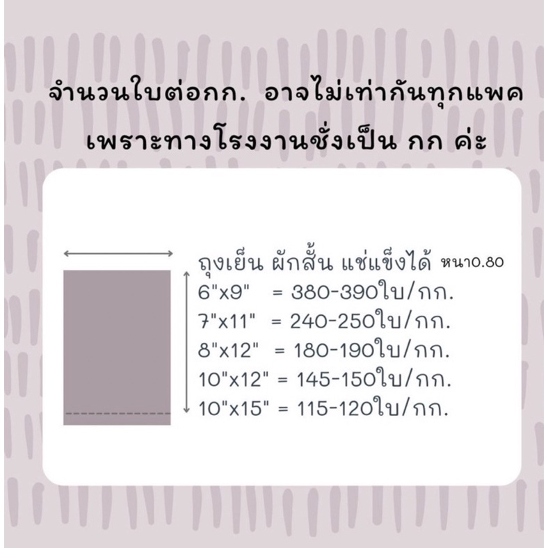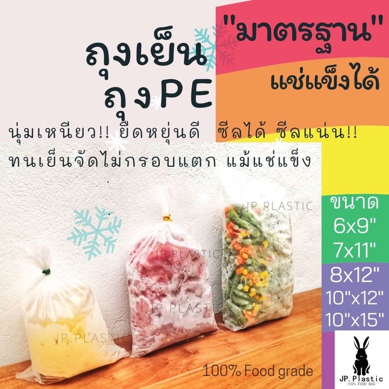 ถุงเย็น หนามาตรฐาน(แพค 1 kg.) แช่แข็งได้ เนื้อ PE LLDPE ใส่อาหาร เนื้อหนียว ไม่แตกง่าย