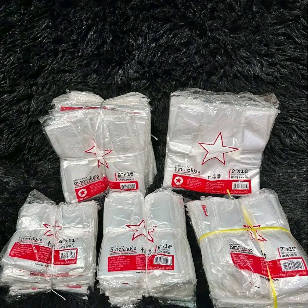 ถุงใส ถุงร้อน เนื้อใส ตราชฎา ไซส์ใหญ่ ถุงใส่อาหาร ถุงใส่ผ้า ถุงใส่ตุ๊กตา น้ำหนัก 0.5-1 kg