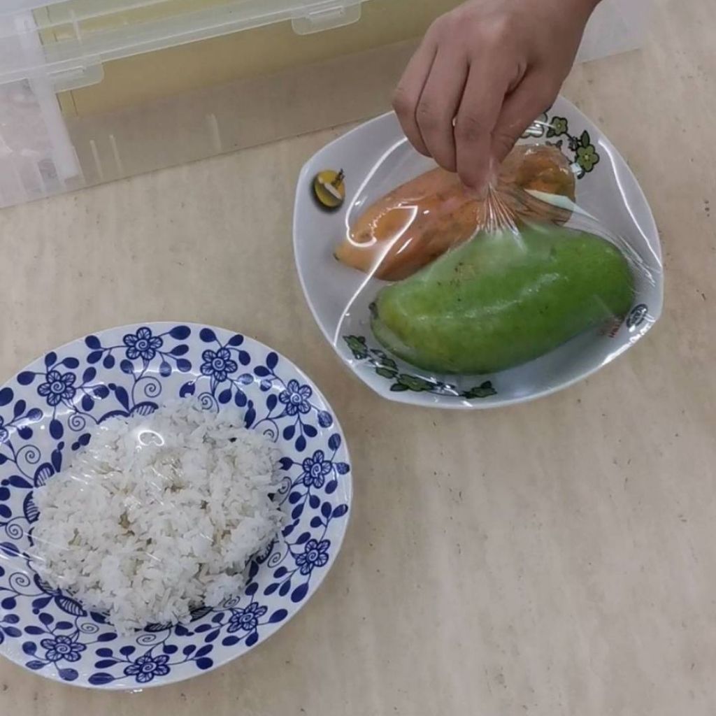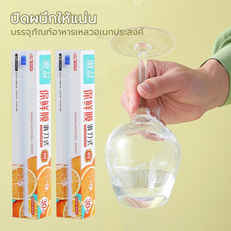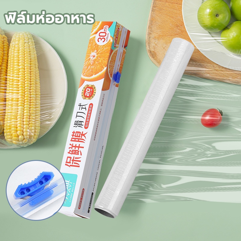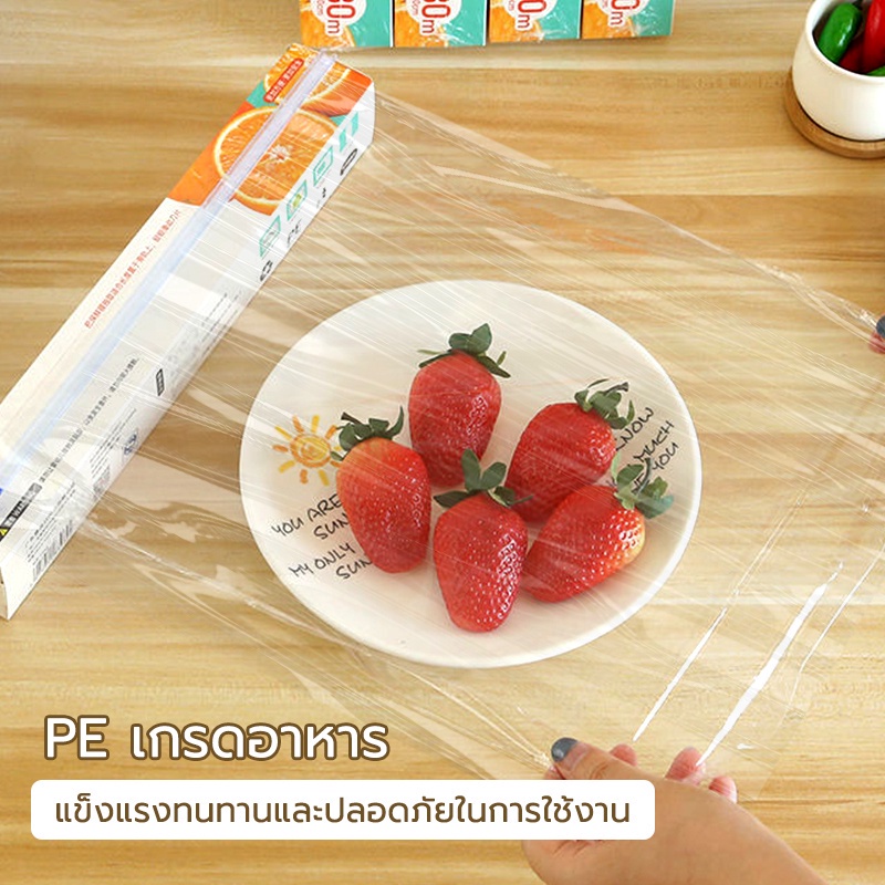 ฟิล์มยึด PE เกรดอาหาร แรปห่ออาหาร ฟิล์มถนอมอาหาร ฟิล์มยืดอเนกประสงค์ ไม่ต้องใช้มีด กว้าง 22/30cm ความยาว 50 m