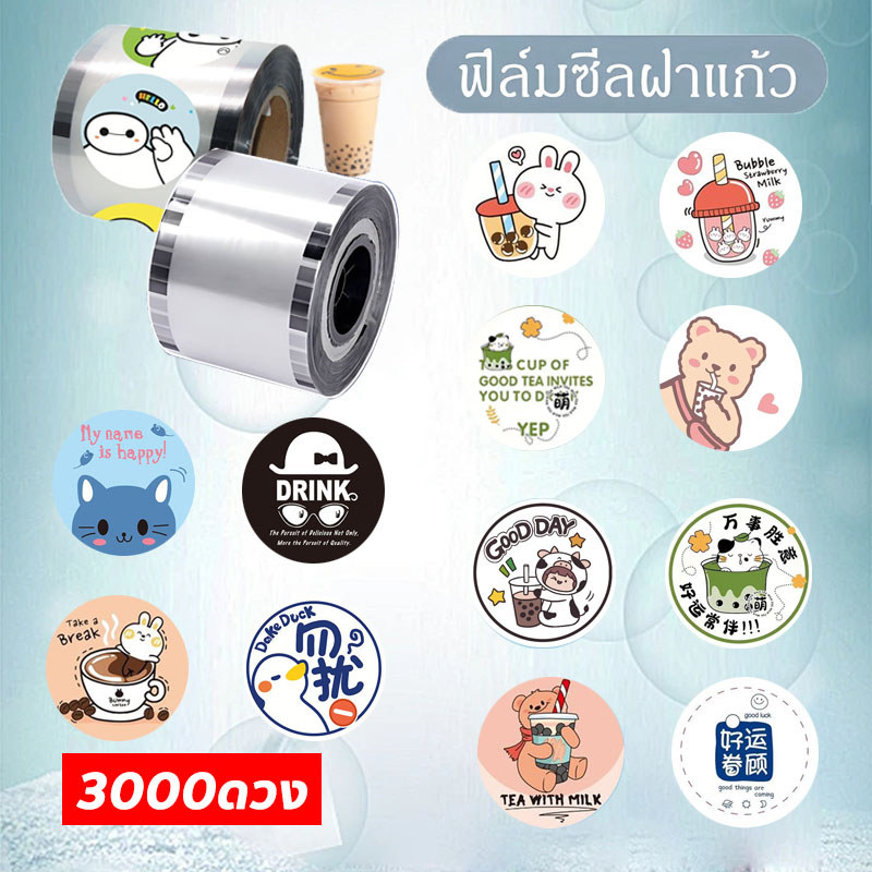 ฟิล์มซีลฝาแก้วพลาสติก tea time ม้วนฟิล์ม ชาไข่มุก 3000ดวง(1 ม้วน) ผลไม้ Etc.