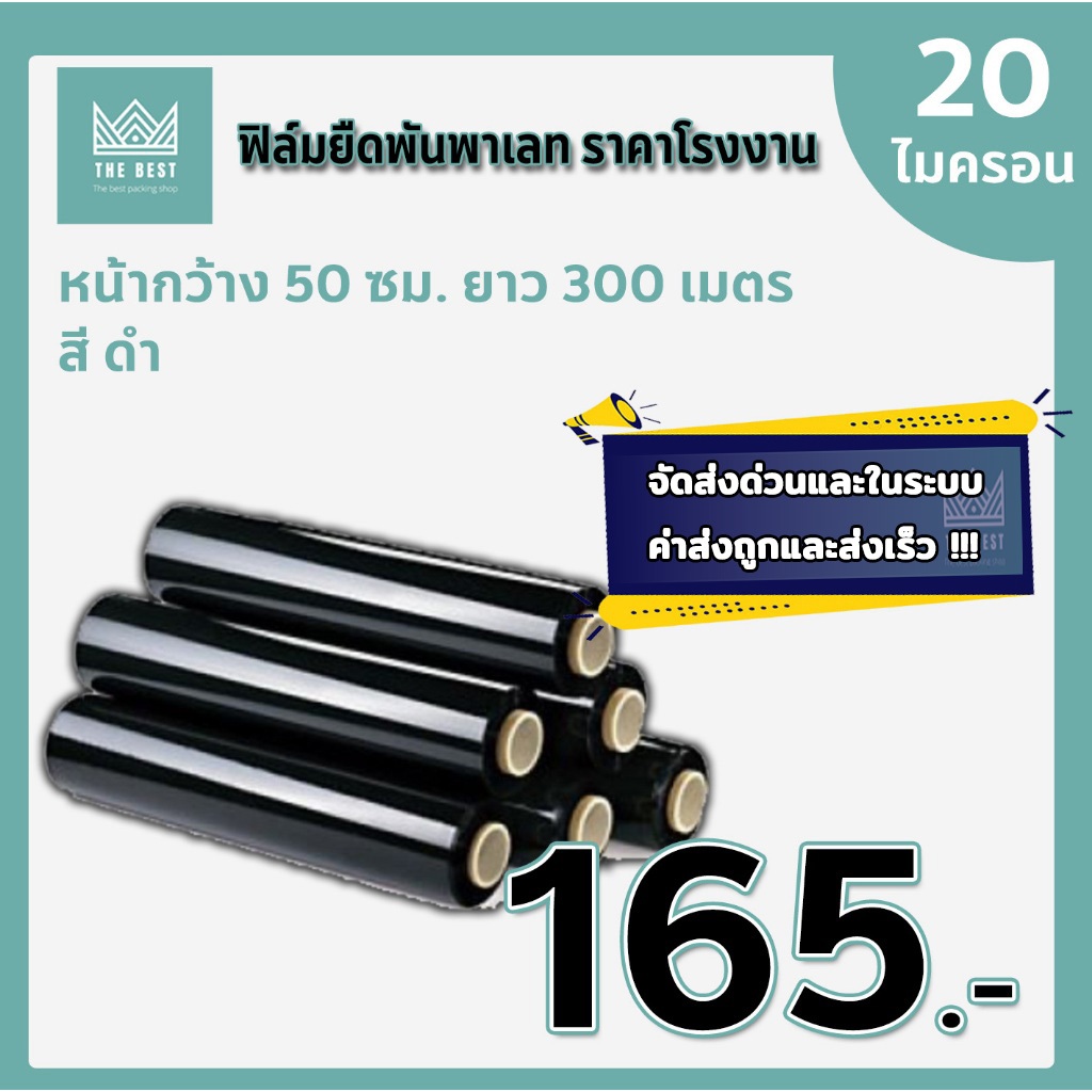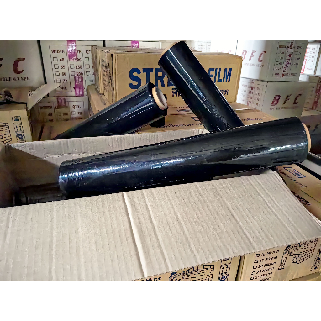 ฟิล์มยืดพันพาเลทสีดำ หนา 20 ไมครอน ยาว 300 เมตร น้ำหนักเต็ม ส่งด่วนในระบบ shopee ส่งเร็ว ส่งถูก !!!