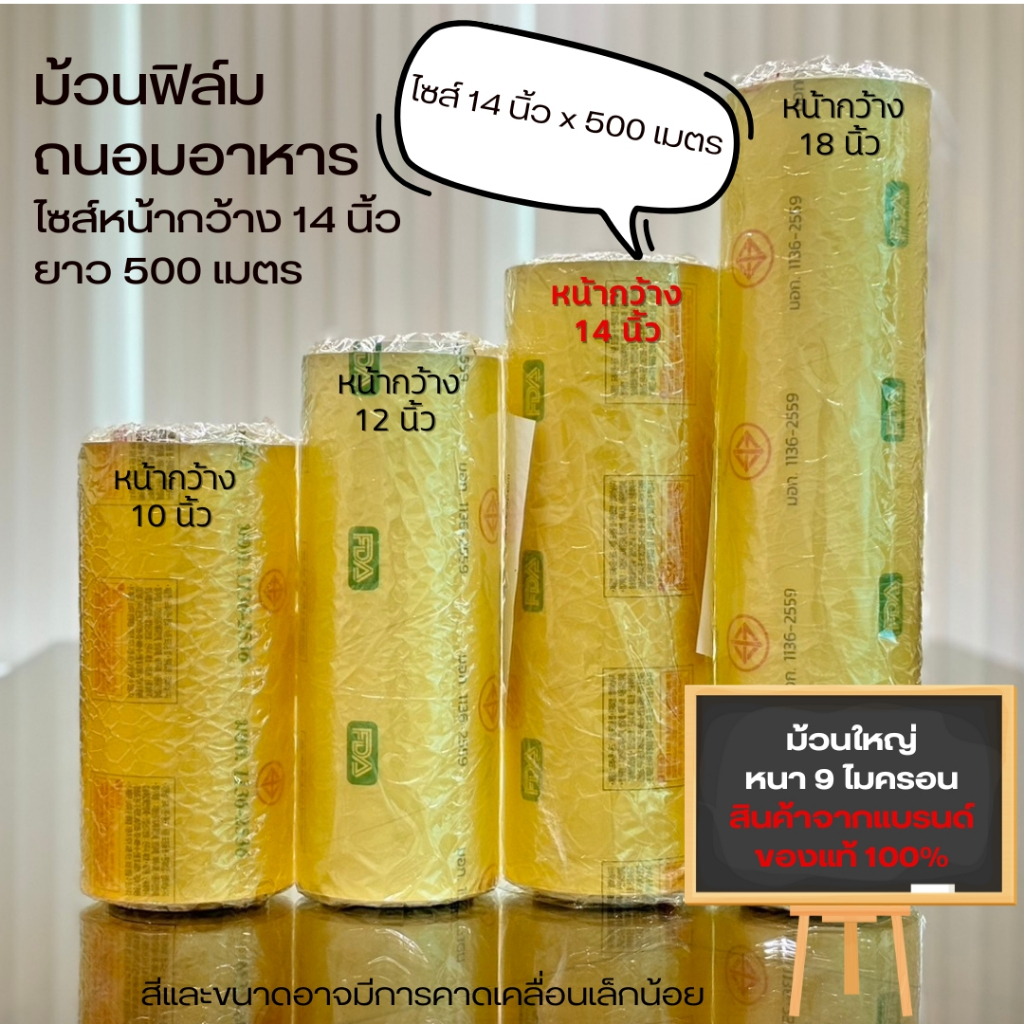ฟิล์มถนอมอาหารม้วนใหญ่ไซส์ 14 นิ้ว หนา 9 ไมครอน ยาว 500 เมตรฟิล์มห่ออาหาร ที่แรปอาหาร บาง เหนียว แข็งแรง ยืดหยุ่น