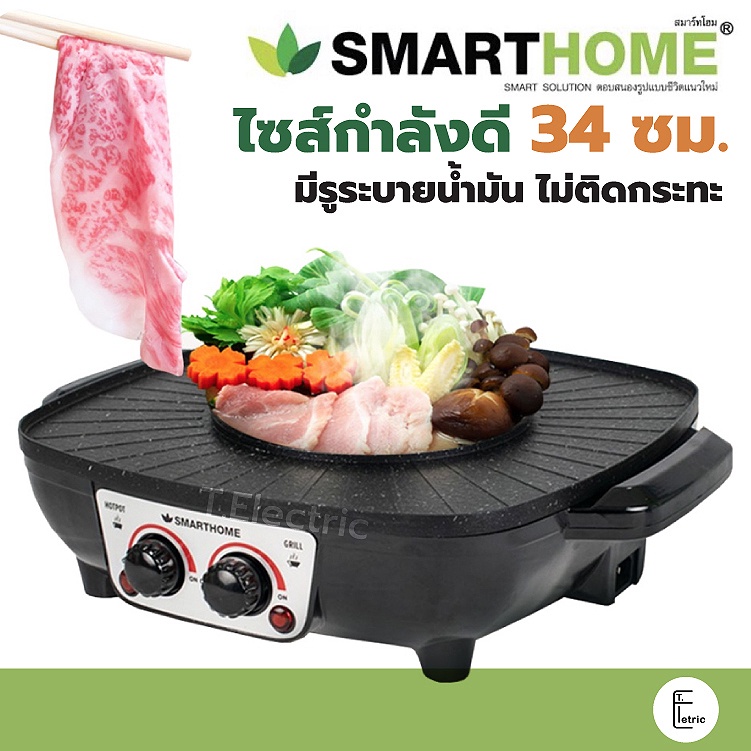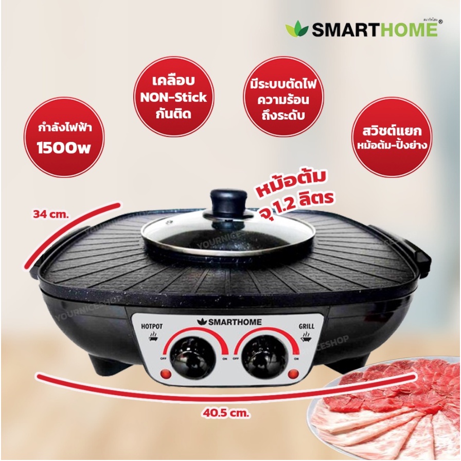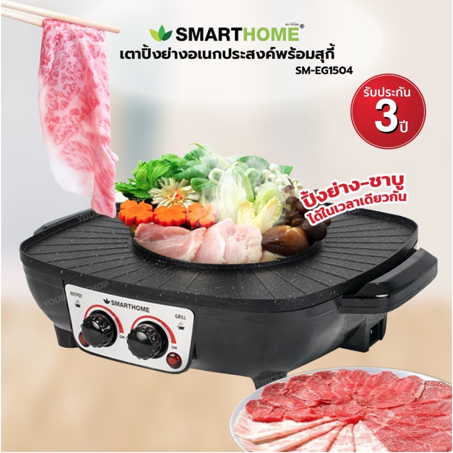 [มีถาดรองน้ำมัน] ? Smarthome เตาปิ้งย่าง บาร์บีคิว EG-1503 / EG-1504 1500W / EG-1505 สุกี้ชาบู หม้อชาบู กระทะปิ้งย่าง