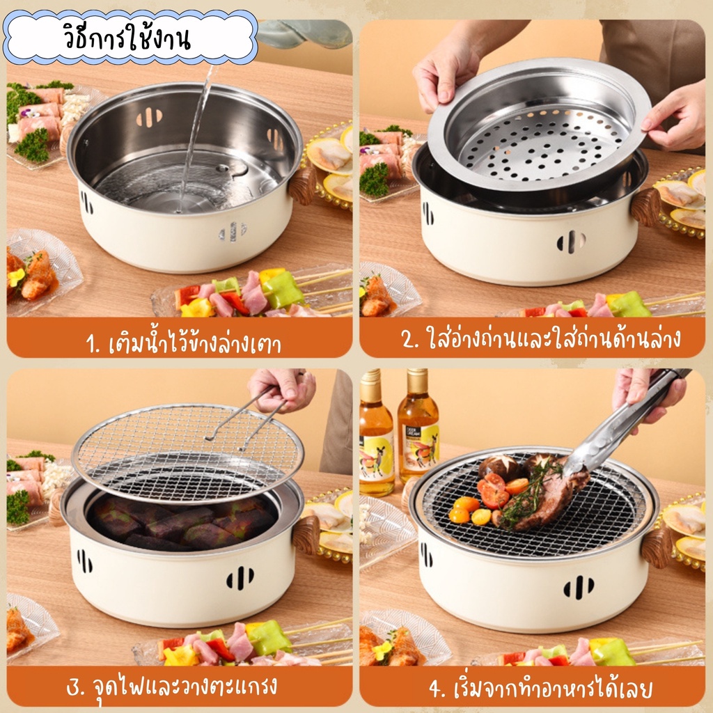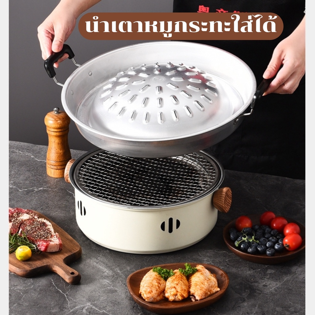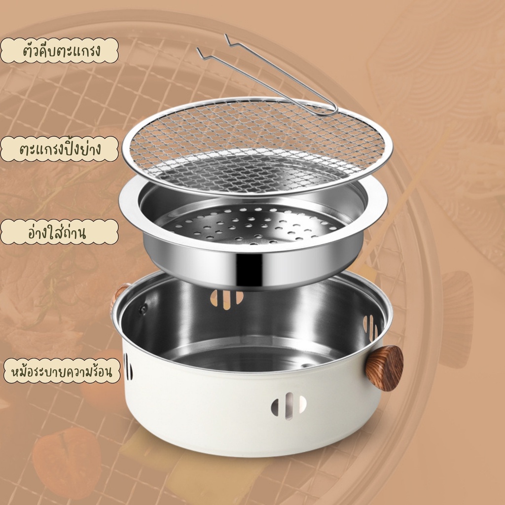 ⭐ลูกค้าใหม่ 1฿⭐เตาปิ้งย่างใส่ถ่าน เตาปิ้งย่างเกาหลี ครบเซ็ท 4 ชิ้น กระทะปิ้งย่าง เตาถ่านแบบไร้ควันในครัว